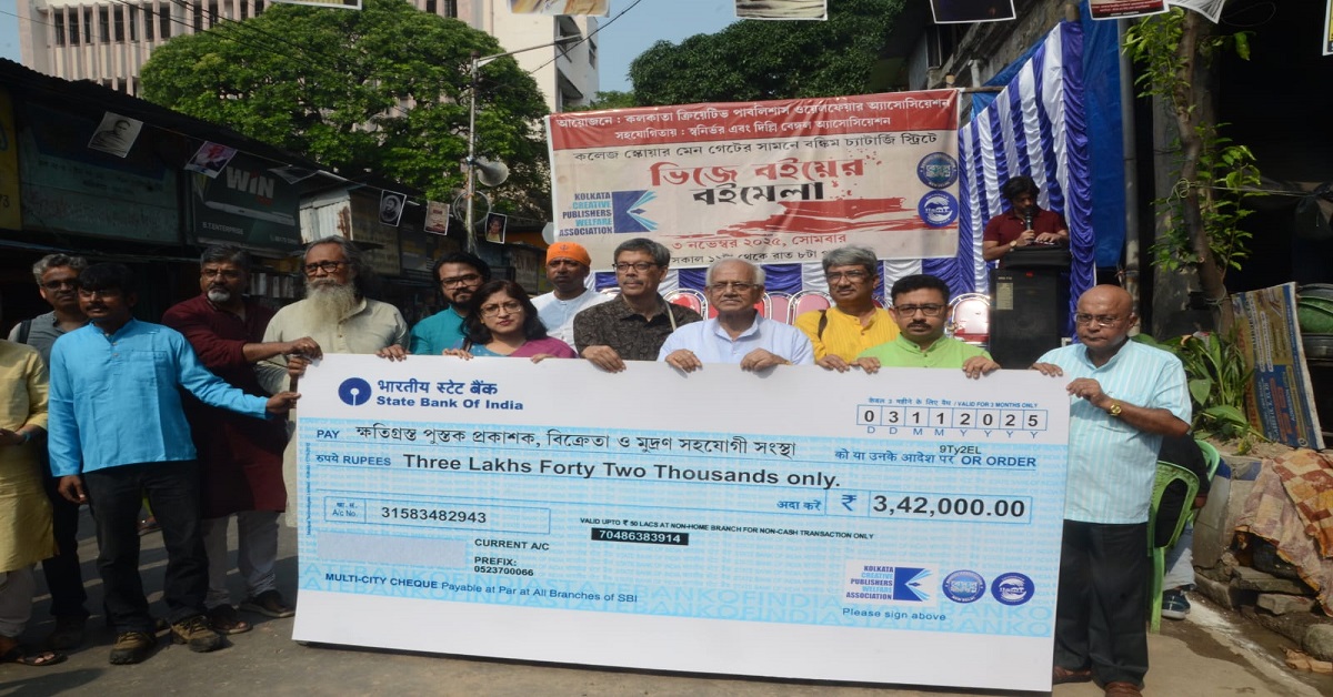 আর সেখানেই গোটা দিন জড়ো হয়ে গিয়েছিলেন বাংলার বইপ্রেমী মানুষ। আর তাতে ৮ ঘণ্টার মেলায় দিনভর বিক্রি হল প্রায় ৫ লক্ষ টাকার ভিজে যাওয়া, কিঞ্চিৎ নষ্ট বই। এ কেবল বাংলাই পারে। কেননা বাঙালি জানে, বই কিনে কেউ কখনও দেউলিয়া হয় না (প্রমথ চৌধুরী উবাচ)। তাই তাঁরা যথাসাধ্য সাথ দিলেন কলকাতা ক্রিয়েটিভ পাবলিশার্স ওয়েলফেয়ার অ্যাসোসিয়েশন আয়োজিত সোমবারের এই মেলায়। সহযোগিতায় ছিল স্বনির্ভর ও দিল্লি বেঙ্গল অ্যাসোসিয়েশন। পাশাপাশি এঁরা কলেজ স্ট্রিটের ৬৫ জন প্রকাশক, পুস্তক বিক্রেতা ও মুদ্রণ সহযোগী সংস্থার হাতে সহায়তা চেক তুলে দেন এদিন, সাম্প্রতিক ক্ষতির কিছুটা অন্তত সামাল দিতে। সেখানেও হাত বাড়িয়ে দিয়েছেন চিরকালীন কৃষ্টির বাহক বাঙালি পাঠককুল। সকালে মেলার আনুষ্ঠানিক সূচনা করেন মন্ত্রী শোভনদেব চট্টোপাধ্যায় ও সাহিত্যিক প্রচেত গুপ্ত। আর মেলার শেষ করেন বাংলা পক্ষের সম্পাদক গর্গ চট্টোপাধ্যায়, সমাজসেবী পিয়াল চৌধুরি প্রমুখ। সারা দিন ধরে এসেছেন, উদ্যোক্তা ও প্রকাশকদের উৎসাহ জুগিয়ে গিয়েছেন লেখক, সাহিত্যিক, অধ্যাপক, শিক্ষক, প্রকাশক, গবেষক অনেকেই। সংস্থার সভাপতি অভিযান পাবলিশার্সের তরুণ কর্ণধার মারুফ হোসেন ও তাঁর সহযোগীদের এই কাজ বাংলা প্রকাশনা জগৎকে শত বিপর্যয়ের মধ্যেও মাথা তুলে দাঁড়ানোর দিশা দেখানোর পাশাপাশি বুঝিয়ে দিল, বইয়ের মৃত্যু হয় না, অন্তত এই বাংলায়।