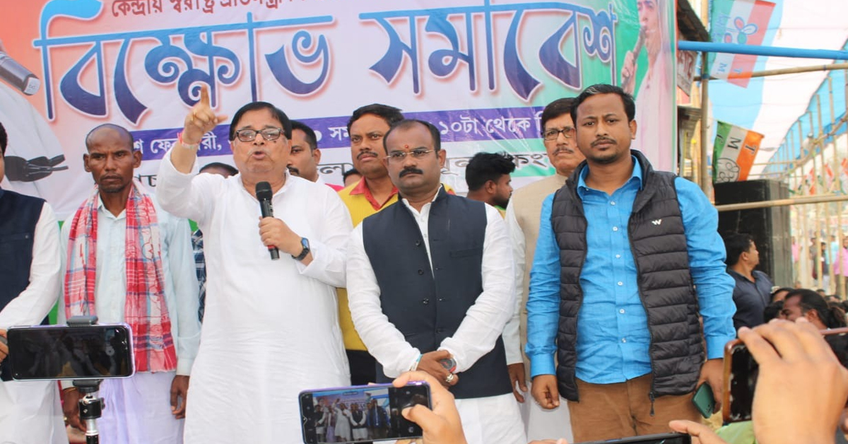 অনুপম সাহা, কোচবিহার: বিএসএফ (BSF) নিরীহ গ্রামবাসীদের ওপর অত্যাচার চালাচ্ছে। তাদের গুলিতে প্রাণ যাচ্ছে নির্দোষ মানুষের। এইসব বন্ধ হোক। এই জুলুম চলবে না। বিএসএফের গুলিতে রাজবংশী যুবক প্রেমকুমার বর্মনের মৃত্যুর প্রতিবাদে কেন্দ্রীয়মন্ত্রী নিশীথ প্রামাণিকের (Nisith Pramanik) বাড়ি ঘেরাওয়ে ২৫ হাজার মানুষের কণ্ঠে উঠল একই আওয়াজ। তৃণমূল কংগ্রেসের সর্বভারতীয় সাধারণ সম্পাদক অভিষেক বন্দ্যোপাধ্যায়ের (Abhishek Banerjee) নির্দেশে রবিবার সকাল ১০টা থেকে সন্ধ্যা ৫টা পর্যন্ত এই বিক্ষোভ-সমাবেশ হয়। প্রতিবাদে শামিল হয়েছিলেন ২৫ হাজার সাধারণ মানুষ। প্রতিবাদ মঞ্চে তৃণমূল কংগ্রেসের নেতা-মন্ত্রীদের সঙ্গে উপস্থিত ছিলেন মৃত প্রেমকুমার বর্মনের (Prem Kumar Barman) বাবা ও দাদাও। এদিন প্রতিবাদ মঞ্চ থেকে কেন্দ্রের বিরুদ্ধে তীব্র ক্ষোভ উগরে দেন মন্ত্রী উদয়ন গুহ। তিনি বলেন, আমরা সাধারণ মানুষের কাছে এবং গোটা ভারতবাসীর কাছে এদের মুখোশটা খুলে দিতে চাই। বিএসএফ (BSF) একটা নিরীহ ছেলেকে গুলি করে হত্যা করেছে। শুধু হত্যা না অমানবিকভাবে মেরেছে। গুলি চালানোর ফলে ওর শরীরে একবিন্দু রক্ত ছিল না ময়নাতদন্তের সময়। কতটা নারকীয় ভাবে হত্যা করলে এই অবস্থা হতে পারে। প্রতিবাদ সভায় ছিলেন তৃণমূল কংগ্রেসের জেলা সভাপতি অভিজিৎ দে ভৌমিক, সিতাই বিধানসভা কেন্দ্রের বিধায়ক জগদীশচন্দ্র বর্মা বসুনিয়া, মেখলিগঞ্জ বিধানসভা কেন্দ্রের বিধায়ক পরেশচন্দ্র অধিকারী, পার্থপ্রতিম রায়, শুচিস্মিতা দেবশর্মা, বিনয়কৃষ্ণ বর্মন, তৃণমূল যুব কংগ্রেসের জেলা সভাপতি কমলেশ অধিকারী, আবদুল জলিল আহমেদ প্রমুখ।