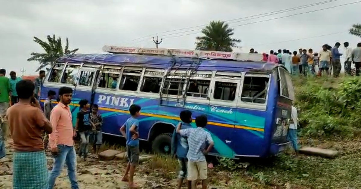সংবাদদাতা, ডোমকল : বাস ও মোটর বাইক দুর্ঘটনায় (Bus- Bike Accident) মৃত্যু হল দুজনের আহত হলেন ১৫ জন। আহতদের ডোমকল ও মুর্শিদাবাদ মেডিক্যাল কলেজ হাসপাতালে ভর্তি করা হয়েছে। তাঁদের মধ্যে কয়েক জন আশঙ্কাজনক। বুধবার সকালে ঘটনাটি (Bus- Bike Accident) ঘটেছে ডোমকল থানার নাজিরপুর এলাকায়। ডোমকল থেকে বহরমপুরগামী একটি বেসরকারি বাস যাওয়ার পথে নিয়ন্ত্রণ হারিয়ে একটি মোটর বাইক চালককে ধাক্কা মেরে নয়ানজুলিতে উল্টে যায়। ঘটনায় মোটরসাইকেল চালকসহ বাস যাত্রীরা আহত হন। স্থানীয় মানুষ ও ডোমকল থানার পুলিশ ঘটনাস্থলে পৌঁছে আহতদের উদ্ধার করে ডোমকল মহকুমা হাসপাতালে পাঠায়। ওই হাসপাতালে খেদের শেখ (৪৫) নামে বাসের খালাসির মৃত্যু হয়। অন্যদিকে ডোমকল মহকুমা হাসপাতাল থেকে আটজনকে আশঙ্কাজনক অবস্থায় মুর্শিদাবাদ মেডিক্যাল কলেজ হাসপাতালে পাঠানো হয়। তাদের মধ্যে জসিফ শেখ (২৪) নামে ওই বাইক চালকের মৃত্যু হয়েছে।