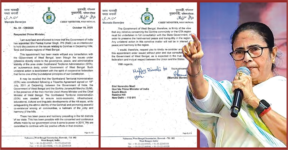 চিঠিতে মুখ্যমন্ত্রী লেখেন, জানতে পেরে আমি বিস্মিত ও স্তম্ভিত যে, ভারত সরকার অবসরপ্রাপ্ত আইপিএস আধিকারিক পঙ্কজকুমার সিংহকে গোর্খা সংক্রান্ত আলোচনার জন্য মধ্যস্থতাকারী নিযুক্ত করেছে। এই নিয়োগ পশ্চিমবঙ্গ সরকারের সঙ্গে কোনওরকম পরামর্শ ছাড়াই করা হয়েছে, অথচ বিষয়টি সরাসরি রাজ্যের শাসন, শান্তি এবং প্রশাসনিক স্থিতিশীলতার সঙ্গে যুক্ত।