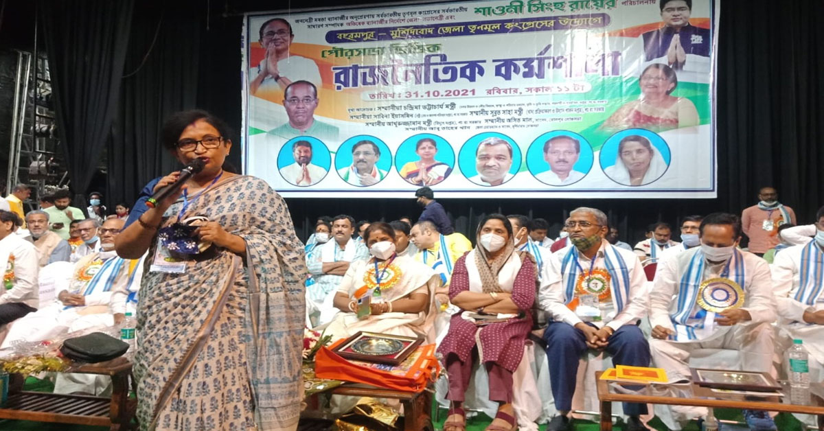 সংবাদদাতা, বহরমপুর : পুরসভাভিত্তিক রাজনৈতিক কর্মশালায় অধীর চৌধুরির নাম না করে কটাক্ষ করলেন নগরোন্নয়ন মন্ত্রী চন্দ্রিমা ভট্টাচার্য। রবিবার বহরমপুর রবীন্দ্রসদন প্রেক্ষাগৃহে। চন্দ্রিমা বলেন, ইন্দিরা গান্ধীর উত্তরসূরি বলে যারা দাবি করে, তারা বিভেদকামী শক্তিকে বহরমপুর বিধানসভায় ঠাঁই দিয়েছে। সত্যিই যদি ইন্দিরা গান্ধীর উত্তরসূরি হতেন, তাহলে বিভেদকামী শক্তি বিজেপির হাতে বহরমপুর বিধানসভা তুলে দিতেন না। গণতান্ত্রিক পদ্ধতিতে এর প্রতিবাদ করবে তৃণমূল কংগ্রেস। প্রকৃত কংগ্রেস কে, ধর্মনিরপেক্ষ কে, সেটা মুর্শিদাবাদ ও মালদার মানুষ বুঝে গিয়েছেন বলেই বিধানসভায় এত ভাল ফল হয়েছে তৃণমূল কংগ্রেসের। জেলার পুরভোটের প্রস্তুতি দেখে চন্দ্রিমা জেলার নতুন তৃণমূল সভাপতি শাওনি সিংহরায়কে একশোয় দুশো নম্বর দিলেন। যে ছ’টি পুরসভায় নির্বাচন হতে চলেছে, তাতে সাধারণ মানুষ তৃণমূল কংগ্রেসের ওপরই ভরসা রাখবে বলে কর্মীদের আশ্বস্ত করলেন। এদিনের কর্মশালায় ছ’টি পুরসভার চেয়ারম্যান-সহ বুথ কর্মীরা ছিলেন। ছিলেন মন্ত্রী সাবিনা ইয়াসমিন, সাংসদ অসিত মাল, মন্ত্রী সুব্রত সাহা, শাওনি সিংহরায় প্রমুখ।