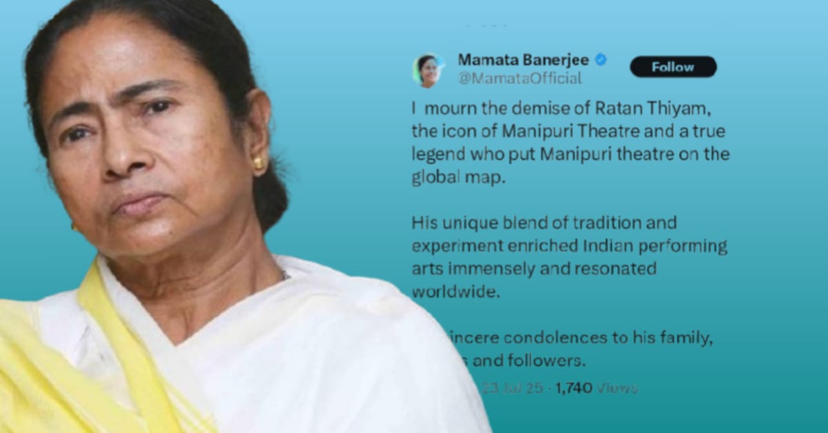 জনপ্রিয় নাট্যব্যক্তিত্ব রতন থিয়ামের (Ratan Thiyam) প্রয়াণে শোকপ্রকাশ করলেন মুখ্যমন্ত্রী মমতা বন্দ্যোপাধ্যায়। এক্স হ্যান্ডেলে তিনি জানিয়েছেন, “মণিপুরী নাট্য জগতে আইকন এবং বিশ্ব মানচিত্রে মণিপুরী থিয়েটারকে প্রতিষ্ঠিত করার এক সত্যিকারের কিংবদন্তি রতন থিয়ামের মৃত্যুতে আমি শোকাহত। তাঁর পরিবার, বন্ধুবান্ধব এবং অনুরাগীদের প্রতি আমার আন্তরিক সমবেদনা।”
