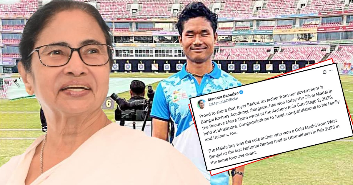 সোশ্যাল মিডিয়াতে মুখ্যমন্ত্রী মমতা বন্দ্যোপাধ্যায় (CM Mamata banerjee) জানিয়েছেন, এটা সত্যিই একটা গর্বের বিষয়। আমাদের বাংলার ঝাড়গ্রামে তিরন্দাজী অ্যাকাডেমির জুয়েল সরকার এশিয়া কাপ স্টেজ-২ তে পুরুষদের দলগত তিরন্দাজীতে রুপো জিতেছে। জুয়েলকে অনেক শুভেচ্ছা। সেইসঙ্গে তাঁর পরিবরের সকলকেও অনেক শুভেচ্ছা। গত ফেব্রুয়ারিতে উত্তরাখণ্ডে যে ন্যাশনাল হয়েছিল সেখানেও বাংলার হয়ে মালদের এই তীরন্দাজ সোনা জিতেছিলেন। ন্যাশনালসে সোনা জিতেই সকলের নজর কেড়েছিল জুয়েল সরকার। সেই ধারা এবার এশিয়া কাপ স্টেজ-২ তেও ধরে রাখলেন জুয়েল।