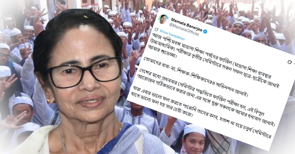এক্স হ্যান্ডেলে মুখ্যমন্ত্রী জানিয়েছেন,”আজ পশ্চিমবঙ্গ মাদ্রাসা শিক্ষা পর্ষদের ফাজিল (মাদ্রাসা শিক্ষা ব্যবস্থার উচ্চমাধ্যমিক) পরীক্ষার (Fazil exam_Mamata Banerjee) তৃতীয় সেমিস্টারে সকল সফল ছাত্র-ছাত্রীকে জানাই আমার শুভেচ্ছা।