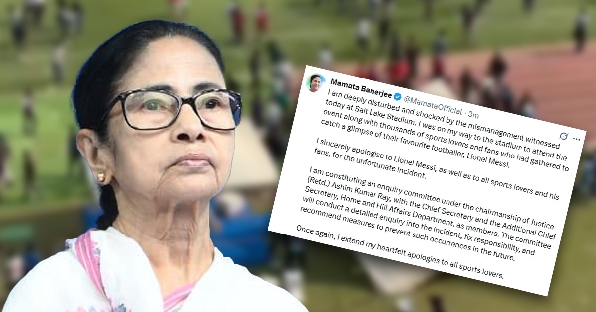 শনিবার নজিরবিহীন বিশৃঙ্খলা যুবভারতী ক্রীড়াঙ্গনে। আয়োজকদের অব্যবস্থায় ক্ষোভ প্রকাশ মুখ্যমন্ত্রী মমতা বন্দ্যোপাধ্যায়ের। অনুষ্ঠানে যোগ দিতে পারলেন না মুখ্যমন্ত্রী মমতা বন্দ্যোপাধ্যায়। তা নিয়ে লিওনেল মেসির (Messi_Mamata Banerjee) কাছে ক্ষমা চাইলেন মুখ্যমন্ত্রী। সেই সঙ্গে প্রাক্তন বিচারপতি অসীম কুমার রায়ের নেতৃত্বে কমিটি গঠন করে তদন্তের নির্দেশ দিলেন মুখ্যমন্ত্রী (Messi_Mamata Banerjee)।