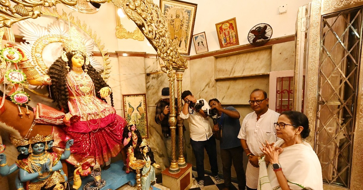 শীতলা পুজোর অনুষ্ঠানে গিয়ে সাম্প্রদায়িক সম্প্রীতির বার্তা দিলেন মুখ্যমন্ত্রী মমতা বন্দ্যোপাধ্যায় (CM Mamata Banerjee)। বুধবার সন্ধ্যায় ভবানীপুর কাঁসারি পাড়ায় গুরুদ্বার-লাগোয়া দীর্ঘদিনের পুরোনো শীতলা মন্দিরে যান মুখ্যমন্ত্রী। নিজের এলাকার এই পুজোয় এসে পুরনো দিনের কথা মনে করেন তিনি। সেইসঙ্গে বলেন, এখানে আমি একটা ইংলিশ মিডিয়াম স্কুল করে দিয়েছি। সেখানে আমি ছোটবেলায় পড়াতাম। এখানে প্রত্যেকটা অলিগলি আমার পরিচিত। এই রাস্তার মধ্যে সাম্প্রদায়িক সম্প্রীতি রয়েছে। এখানে গুরুদ্বার, মন্দির, মসজিদ— সব রয়েছে। এখানে পিজির মতো বড় হাসপাতাল আছে। মুখ্যমন্ত্রী (CM Mamata Banerjee) বলেন, প্রত্যেক পাড়াতেই শীতলা পুজো হয়। আমাদের বাংলার সবথেকে বড় গুণ সর্বধর্ম সমন্বয়। সব জায়গার একটা লোকাল ভাষার টান আছে। মুখ্যমন্ত্রী বলেন, আমি বীরভূমে যেখানে জন্মগ্রহণ করেছিলাম সেখানকার ভাষা আর বাঁকুড়ার ভাষার টান অনেকটা একরকম। মেলা থেকে শুরু করে খেলা— সবই আমাদের পার্বণ উৎসবের মধ্যে পড়ে। এখানে মহিলারা দুর্গাপুজো করে, আমি আসি। এখানে আড়াই হাজার লোক দণ্ডী কাটে। আমাকে মন্দিরটি খুব আকর্ষণ করে, আমি মাঝেসাজে সুযোগ পেলেই এখানে চলে আসি। বছরে ৪-৫ বার এখানে আসি। মন্দির নিয়ে একটা দুটো আক্ষেপ ছিল সেগুলো হয়ে গেছে তাতে ওরা খুশি। পাশে একটা ক্লাবও করে দেওয়া হয়েছে।