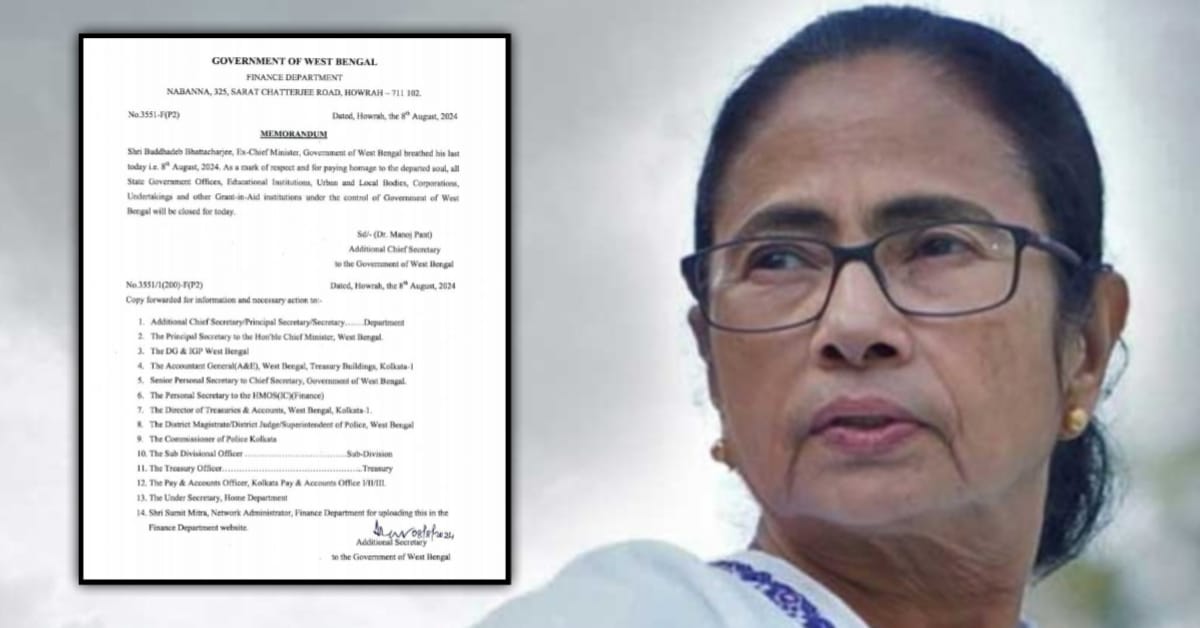 আজ, বৃহস্পতিবার প্রাক্তন মুখ্যমন্ত্রী বুদ্ধদেব ভট্টাচার্যের (Buddhadeb Bhattacharya) প্রয়াণে মমতা বন্দ্যোপাধ্যায় (Mamata Banerjee) জানান আজ পূর্ণ দিবস ছুটি ঘোষণা করা হচ্ছে। প্রাক্তন মুখ্যমন্ত্রীকে রাষ্ট্রীয় মর্যাদায় শেষ শ্রদ্ধা জানানো হবে। দেওয়া হবে গান স্যালুট। এদিন তিনি নিজের এক্স হ্যান্ডেলে শোকপ্রকাশ করে লেখেন, ‘পশ্চিমবঙ্গের প্রাক্তন মুখ্যমন্ত্রী শ্রী বুদ্ধদেব ভট্টাচার্যের আকস্মিক প্রয়াণে আমি মর্মাহত। বিগত কয়েক দশক ধরেই আমি তাঁকে চিনতাম এবং গত কয়েক বছরে তিনি যখন অসুস্থ ছিলেন, তখন আমি কয়েকবার তাঁকে বাড়িতে দেখতে গিয়েছি। এই মুহূর্তে আমি খুব দুঃখিত বোধ করছি। এই শোকের সময়ে মীরাদি এবং সুচেতনের প্রতি আমার আন্তরিক সমবেদনা জানাই। আমি সিপিআই(এম) দলের সকল সদস্য-সদস্যা, সমর্থক এবং তাঁর সমস্ত অনুগামীদের আন্তরিক সমবেদনা জানাচ্ছি।’