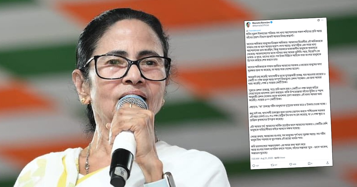 এক্স হ্যান্ডেলে মুখ্যমন্ত্রী (CM Mamata Banerjee) জানিয়েছেন, “খাদ্যের অধিকার মানুষের চিরন্তন অধিকার। আমাদের বিরোধীরা এই অধিকারকে সম্মান দেয় না বলে আমার খারাপ-লাগা আছে। বামপন্থীরা এক সময় খাদ্য আন্দোলনের ভান করেছিল, কিন্তু সরকারে থাকাকালীন মানুষকে অনাহারে মেরেছে: আমলাশোলের মতো ঘটনার কথা আমরা ভুলিনি। আর, বিজেপি তো ভাষায়-ও মারে, ভাতেও মারে। সব টাকা দিল্লিতে আটকে তারা বাংলার মানুষকে উপোস করিয়ে শেষ করতে চায়।