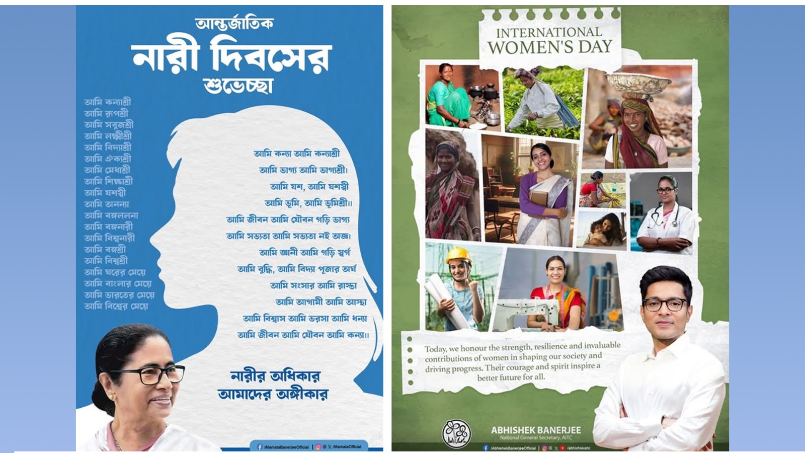 তৃণমূলের সর্বভারতীয় সাধারণ সম্পাদকও সবসময়ই নারীর ক্ষমতাকে কুর্নিশ জানান। নারী দিবসের শুভেচ্ছা জানিয়ে, নিজের এক্স হ্যান্ডেলে অভিষেক লেখেন,
