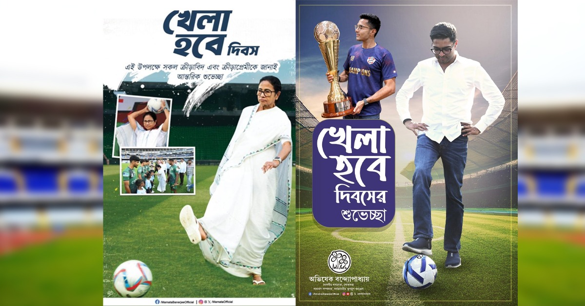 সুস্থ শরীর গড়তে খেলাধূলার গুরুত্বের কথা ছোট শিশুরাও জানে। তবে আজকের দিনে খেলাধূলা শুধুই যে আর শরীর গঠনে ভূমিকা নিয়েই থেমে নেই, তা অনুধাবন করেই খেলাধূলার জন্য ব্যাপকভাবে উন্নয়নমূলক কাজ শুরু করেছিলেন বাংলার মুখ্যমন্ত্রী মমতা বন্দ্যোপাধ্য়ায়। এমনকি খেলাধূলার প্রয়োজনীয়তাকে মনে করিয়ে খেলা হবে দিবসও ঘোষণা করেছিলেন ১৬ অগাস্ট। এবছরের ‘খেলা হবে দিবসে’ (Khela Hobe Dibas) ফের একবার রাজ্যের ক্রীড়াবিদ থেকে ক্রীড়াপ্রেমীদের শুভেচ্ছা মুখ্যমন্ত্রীর। সেই সঙ্গে ‘খেলা হবে দিবসে’র শুভেচ্ছা জানালেন তৃণমূল সর্বভারতীয় সাধারণ সম্পাদক তথা লোকসভার দলনেতা অভিষেক বন্দ্যোপাধ্যায়ও। সোশ্যাল মিডিয়ায় তুলে ধরেন ক্রীড়াপ্রেমী অভিষেকের ছবি।