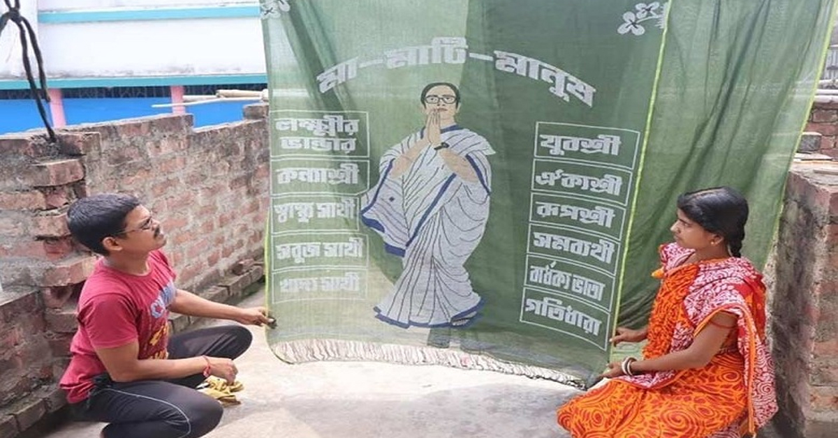 প্রতিবেদন : সাদা খোলের সরু-পাড় তাঁতের শাড়ি। এই পোশাকেই তাঁকে দেখতে অভ্যস্ত আপামর মানুষ। রাইসিনা হিলস হোক বা রাষ্ট্রসংঘের মঞ্চ — তৃণমূল সুপ্রিমো তথা বাংলার মুখ্যমন্ত্রী মমতা বন্দ্যোপাধ্যায়কে (Mamata Banerjee- Saree) এই পোশাকেই দেখা যায়। এবার তাঁর সেই ছবিই শাড়িতে ফুটিয়ে তুললেন কাটোয়ার ঘোড়ানাশের তাঁতশিল্পী জগবন্ধু দালাল। আঁচলে মুখ্যমন্ত্রীর ছবি। সঙ্গে ১১টি প্রকল্পের নাম। আর শাড়ির পাড়ে তৃণমূলের প্রতীক—