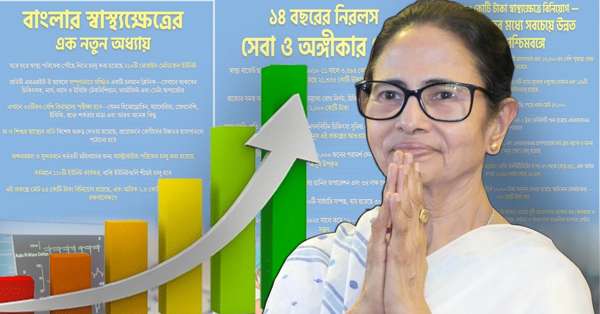 * স্বাস্থ্য বাজেটে ছ’গুণ বৃদ্ধি পেয়েছে- ২০১০-১১ সালে ৩,৫৮৪ কোটি টাকা থেকে ২০২৫-২৬ সালে দাঁড়িয়েছে ২১,৩৫৫ কোটি টাকায়
