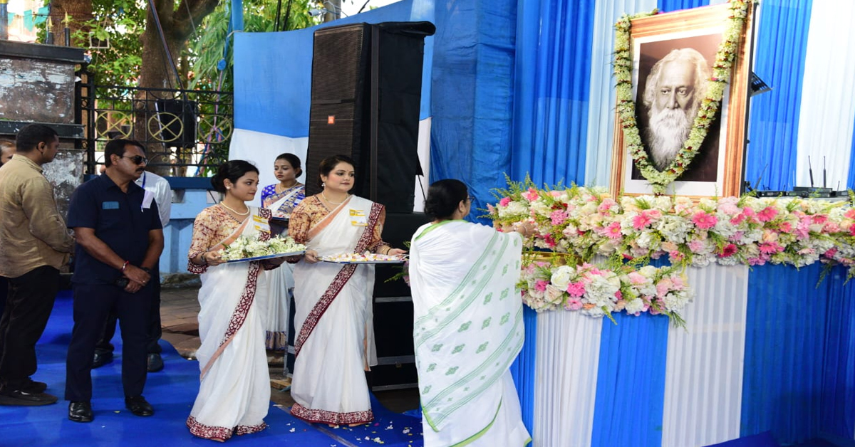 প্রতিবেদন : কবিগুরু রবীন্দ্রনাথ ঠাকুরের (Rabindranath Tagore) ১৬৩তম জন্মজয়ন্তী। রাজ্য জুড়ে পালিত হল বিশ্বকবির জন্মদিন। ভোটের আবহে চূড়ান্ত ব্যস্ততার মধ্যেও ক্যাথিড্রাল রোডে রবীন্দ্রজয়ন্তী উদযাপনে অংশ নিলেন মমতা বন্দ্যোপাধ্যায়। বুধবার আরামবাগ ও বলাগড়ের জনসভা সেরে কলকাতায় ফিরেই ক্যাথিড্রাল রোড সংলগ্ন প্রাঙ্গণে রাজ্য সরকার আয়োজিত রবীন্দ্রজয়ন্তীর অনুষ্ঠানে যোগ দেন তিনি। কবিগুরুর (Rabindranath Tagore) ছবিতে ফুল-মালা দিয়ে শ্রদ্ধার্ঘ্য জানান। কবিগুরুর প্রতি শ্রদ্ধার্ঘ্য জানানোর পর আয়োজিত হয় সঙ্গীতানুষ্ঠানও। মমতা বন্দ্যোপাধ্যায় ছাড়াও উপস্থিত ছিলেন অরূপ বিশ্বাস, ইন্দ্রনীল সেন, চন্দ্রিমা ভট্টাচার্য, শিল্পী ইন্দ্রাণী সেন, জয় গোস্বামী, ব্রততী বন্দ্যোপাধ্যায়-সহ সাংস্কৃতিক জগতের বিশিষ্টজনেরা।