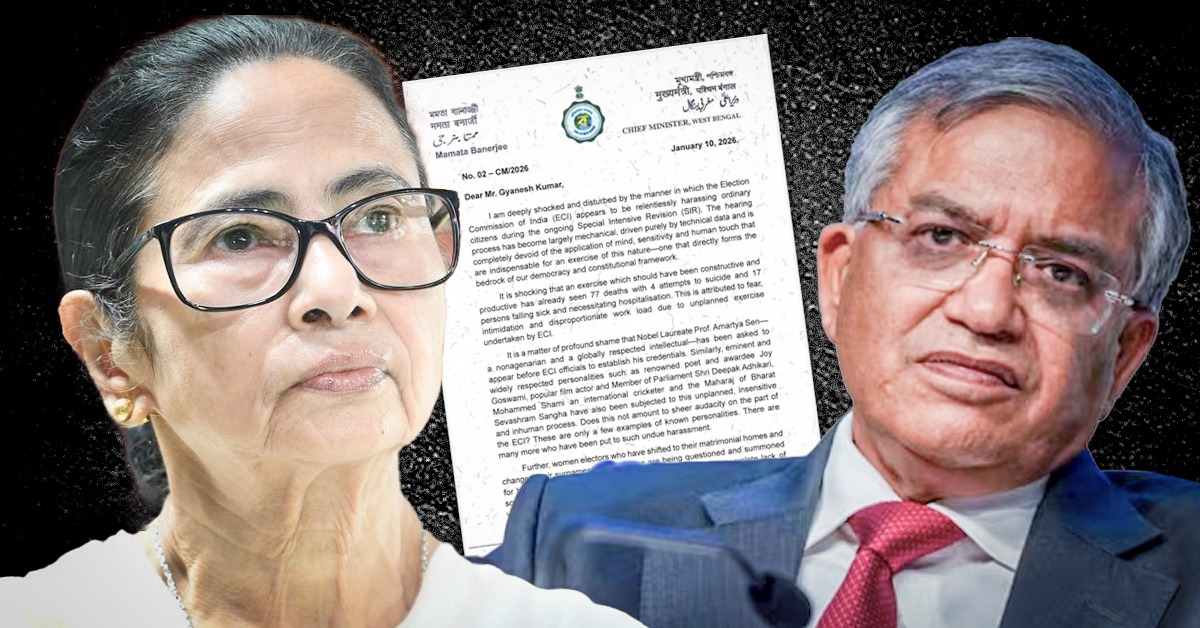 রাজ্যে চলতি এস আই আর প্রক্রিয়া নিয়ে নির্বাচন কমিশনের বিরুদ্ধে ‘হয়রানি’, ‘সংবেদনহীনতা’ এবং ‘রাজনৈতিক পক্ষপাতের’ অভিযোগ তুলে মুখ্যমন্ত্রী মমতা মুখ্যমন্ত্রী মমতা বন্দ্যোপাধ্যায় ফের মুখ্য নির্বাচন কমিশনার জ্ঞানেশ কুমারকে চিঠি লিখেছেন। শনিবার ওই চিঠিতে এসআইআর প্রক্রিয়াকে গণতন্ত্র ও সংবিধানের মূল ভিত্তির উপর আঘাত বলে চিঠিতে তিনি অভিযোগ করেছেন। নবান্ন সূত্রে জানা গিয়েছে, মুখ্যমন্ত্রীর (Mamata banerjee_Gyanesh Kumar) অভিযোগ, এসআইআর প্রক্রিয়া এখন আর গঠনমূলক বা সংশোধনমূলক নেই, বরং তা শুধুই নাম বাদ দেওয়া ও ভোটার বঞ্চনার অস্ত্রে পরিণত হয়েছে। চিঠিতে দাবি করা হয়েছে, এই প্রক্রিয়ার জেরে ইতিমধ্যেই ৭৭ জনের মৃত্যু হয়েছে, ৪ জন আত্মহত্যার চেষ্টা করেছেন এবং ১৭ জন অসুস্থ হয়ে হাসপাতালে ভর্তি হয়েছেন। ভয়, ভীতি ও অযাচিত কাজের চাপ থেকেই এই পরিস্থিতি তৈরি হয়েছে বলে দাবি মুখ্যমন্ত্রীর।