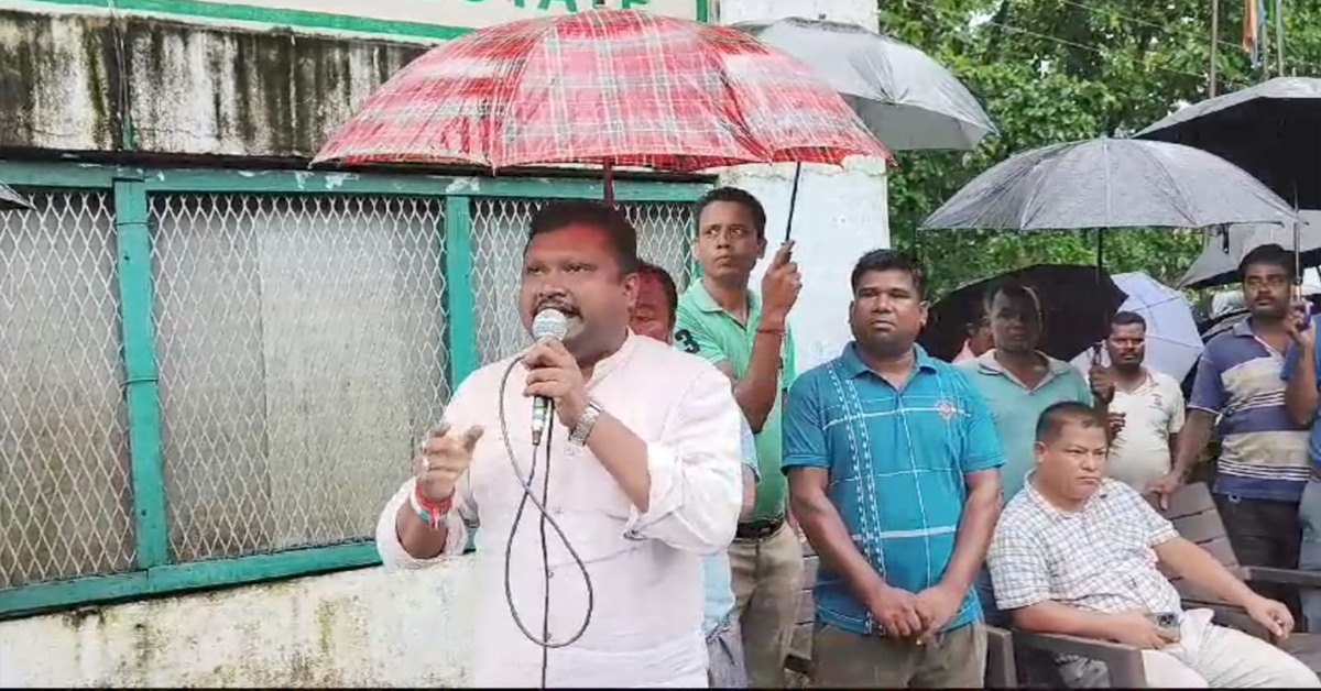 ধওলাঝোরা চা বাগানে গেট মিটিংয়ে বক্তব্য রাখছেন সাংসদ প্রকাশ চিক বরাইক