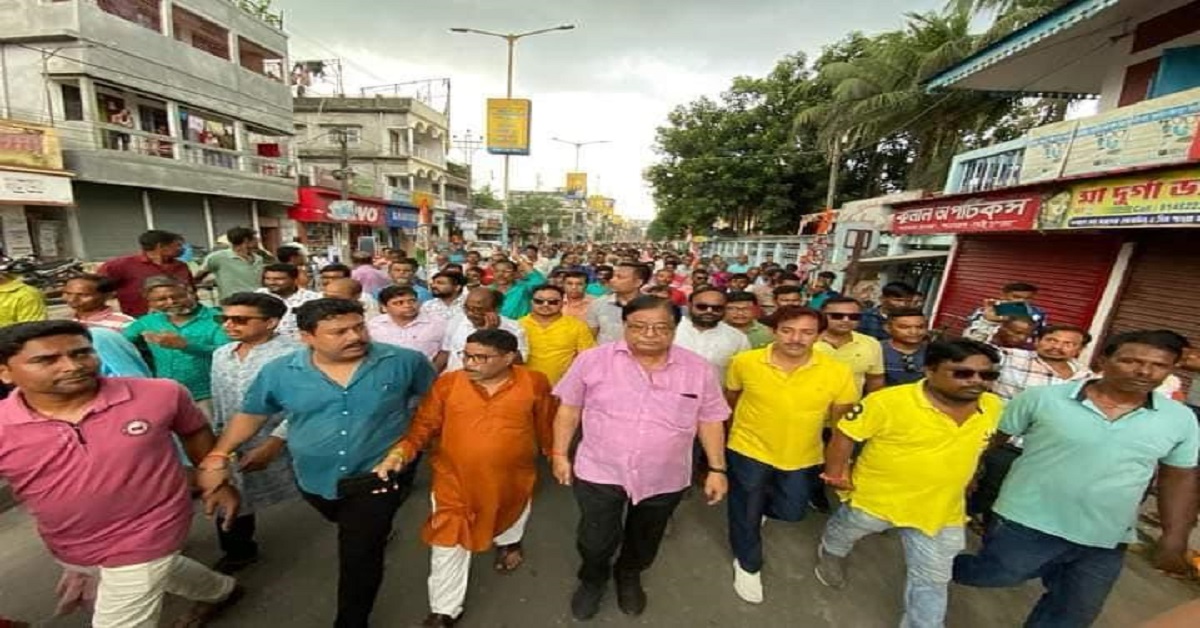 সংবাদদাতা, কোচবিহার : দিনহাটা শহরজুড়ে বিরাট মিছিল তৃণমূলের নেতৃত্বে এই মিছিলে কোচবিহারের সাধারণ মানুষ। স্লোগান একটাই, ‘বিজেপির বাংলা ভাগের চক্রান্ত রুখে দেব আমরা’। এই বিরাট প্রতিবাদ নিয়ে মিছিলের নেতৃত্বে ছিলেন মন্ত্রী উদায়ন গুহ। তিনি বলেন, যাঁরা বাংলা ভাগের কথা বলছেন তাঁরা স্বপ্ন দেখছেন। বাংলা ভাগ তাঁরা হতে দেবেন না। দিনহাটায় বিশাল মিছিল করে হুঁশিয়ারি দিলেন উত্তরবঙ্গ উন্নয়ন মন্ত্রী উদয়ন গুহ৷ দিনহাটা তৃণমূল কংগ্রেসের উদ্যোগে দিনহাটা শহরে হয়েছে এই মিছিল।