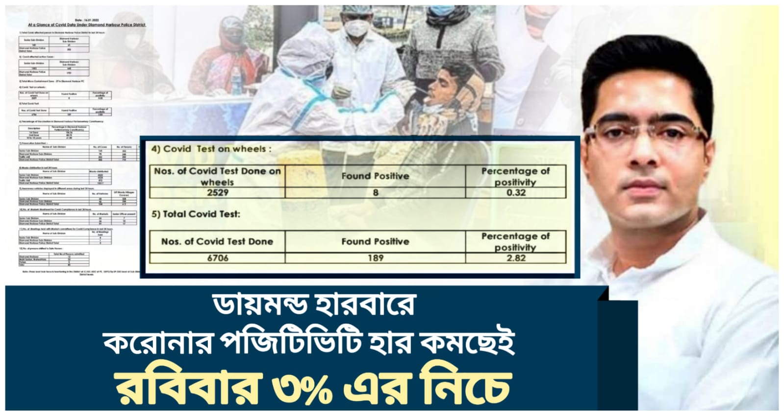 রবিবারের রিপোর্ট অনুযায়ী, ডায়মন্ড হারবারের পজিটিভিটি রেট ৩ শতাংশের নিচে। গোটা রাজ্যের মধ্যে যা বিরল। তাই ডায়মন্ড হারবারই এখন কোভিড নিয়ন্ত্রণে মডেল। স্বামী বিবেকানন্দর জন্মদিনে এক বেনজির উদ্যোগ নিয়েছিলেন ডায়মন্ড (Diamond Harbour) হারবারের সাংসদ।