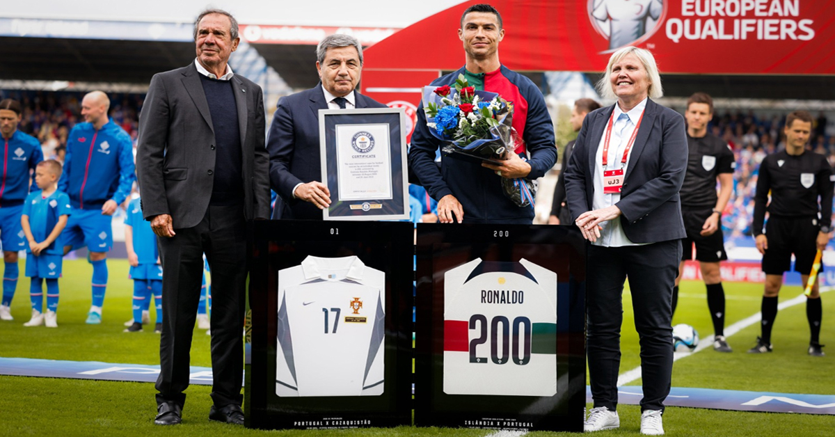 দুশোতম ম্যাচ খেলতে নামার আগে রোনাল্ডোর (Cristiano Ronaldo) হাতে স্মারক হিসেবে তুলে দেওয়া হয় গিনেস রেকর্ড। ২০০৩ সালে পর্তুগালের জার্সিতে অভিষেক ঘটেছিল। দেখতে দেখতে জাতীয় দলে কুড়ি বছরের বৃত্ত সম্পূর্ণ করে ফেললেন সিআর সেভেন। দেশের হয়ে দুশোতম ম্যাচ খেলার আবেগে ভেসে গিয়েছেন পর্তুগিজ মহাতারকাও। রোনাল্ডো বলেন, ‘‘২০০তম ম্যাচ প্রমাণ করছে আমি দেশকে কতটা ভালবাসি। আমার কাছে এই মাইলস্টোন অত্যন্ত গুরুত্বপূর্ণ। একটা অবিশ্বাস্য সাফল্য। কখনও ভাবিনি দেশের হয়ে দুশো ম্যাচ খেলব। একই সঙ্গে গোল করে দলকে জেতাতে পেরেও দারুণ লাগছে।’’