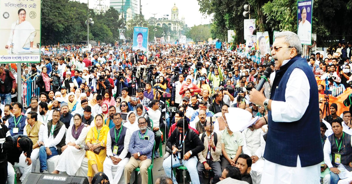 মোদি সরকারকে একহাত নিয়ে কল্যাণ বন্দ্যোপাধ্যায় বলেন, বাবরি মসজিদ ধ্বংস করার পর রামমন্দির তৈরি করেছেন। এবার সংখ্যালঘু মুসলিমদের বাকি সম্পত্তি হাতিয়ে নেওয়ার পরিকল্পনা করেছেন। কিন্তু তৃণমূল ধর্মের লড়াই হতে দেবে না। দরকার হলে আমরা রক্ত দেব, কিন্তু হিন্দু-মুসলিম ঐক্য ধ্বংস হতে দেব না। দেশের সার্বভৌমত্ব প্রাণ দিয়ে রক্ষা করব। ফিরহাদ হাকিম বলেন, শুধু ক্ষমতায় টিকে থাকতে বিজেপি ধর্মের বিভাজন তৈরির চেষ্টা চালাচ্ছে। কে কী খাবে, কী পরবে তা ঠিক করে দিচ্ছে ওরা। অন্যথায় পিটিয়ে মারছে। বিজেপির ডাবল ইঞ্জিন রাজ্যে সেটাই ঘটছে বারবার। এ জিনিস আর বরদাস্ত করব না আমরা। ওরা হিন্দু-মুসলিম লড়াই লাগাতে চায়, ওদের প্ররোচনায় কেউ পা দেবেন না।