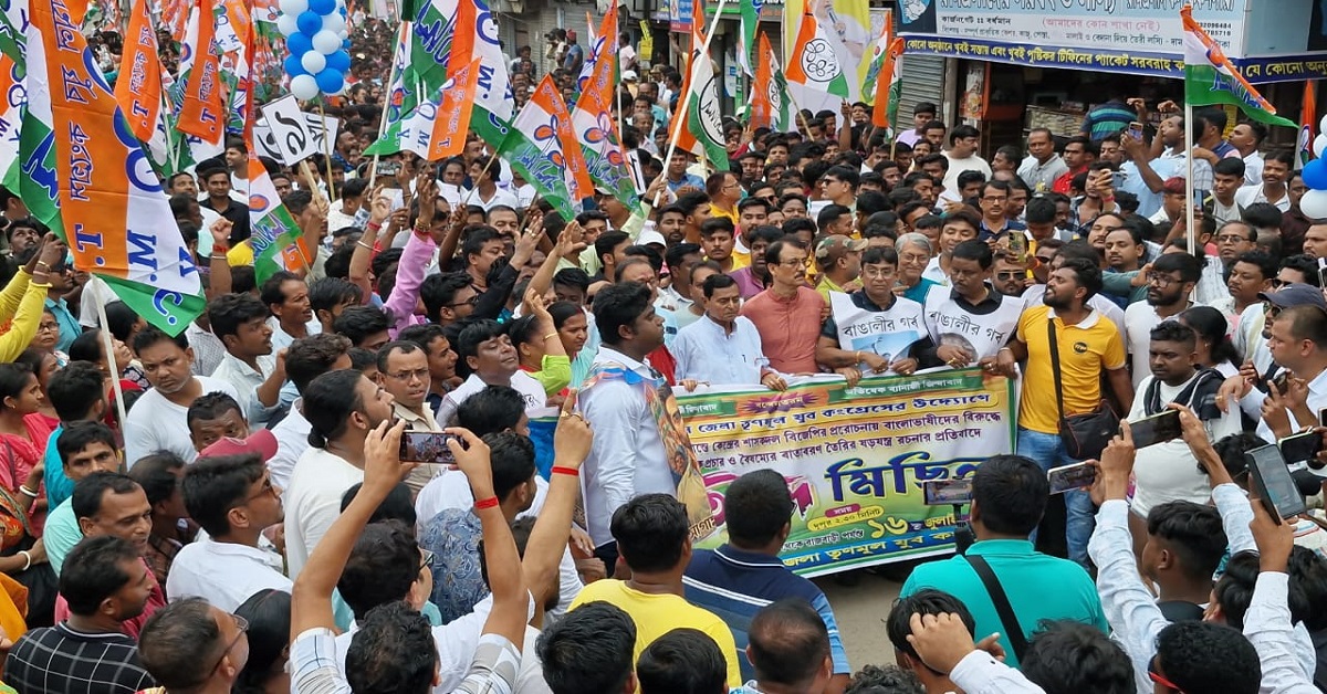 টাউন হল থেকে শুরু হয়ে রাজবাটি উত্তর ফটকে মিছিল শেষ হয়। মিছিলে হাঁটেন মন্ত্রী স্বপন দেবনাথ, জেলা সভাধিপতি শ্যামাপ্রসন্ন লোহার, সহ-সভাধিপতি গার্গী নাহা, সাংসদ শর্মিলা সরকার, বিধায়ক নিশীথ মালিক, অভেদানন্দ থাণ্ডার, শম্পা ধাড়া, মধুসূদন ভট্টাচার্য, বর্ধমান উন্নয়ন সংস্থার নয়া চেয়ারম্যান উজ্জ্বল প্রামাণিক, ভাইস চেয়ারম্যান আইনুল হক, জেলা তৃণমূল যুব সভাপতি রাসবিহারী হালদার-সহ জেলা নেতৃত্ব। রাজবাটি উত্তর ফটকে মিছিল শেষে বক্তব্য রাখতে গিয়ে তৃণমূল আইটি সেলের প্রধান দেবাংশু ভট্টাচার্য বলেন, বিজেপিকে আগামী বছর বাংলার মানুষ সুদে-আসলে জবাব দেবেন। আসামে ৪০ লাখের মধ্যে ৩০ লাখ হিন্দুর নাম বাদ দেওয়া হয়েছে। বিজেপি বাংলাকে ডিটেনশন ক্যাম্পের রাজধানী বানাতে চাইছে। অসম সরকার কোচবিহারের রাজবংশী হিন্দুকে এনআরসির নোটিশ পাঠিয়েছে, মহারাষ্ট-সহ বিভিন্ন রাজ্যে লোক ধরছে আর বলছে, বাংলাদেশি। বাংলা ভাষায় কথা বলা লোক না থাকলে ভারত স্বাধীন হত কি? এই চক্রান্ত রুখতে মমতা বন্দ্যোপাধ্যায়ের হাতকে শক্তিশালী করতে হবে। তিনি বলেন, ওদের ১২টা এমপি কিছু করছে না। মমতা রেলমন্ত্রী থাকাকালীন বাংলাকে উজাড় করে দিয়েছেন। দেবাংশু বলেন, ২৬ শুধু ১৬ -০ নয়, ২১-এর থেকে জেতার ব্যবধান বাড়িয়ে বিজেপিকে ইভিএমের মাধ্যমে জুতো মারতে হবে। ২০২৬-এ তিন পার্টির সংমিশ্রণে যে পার্টি আছে, তাকে হারাতে হবে।