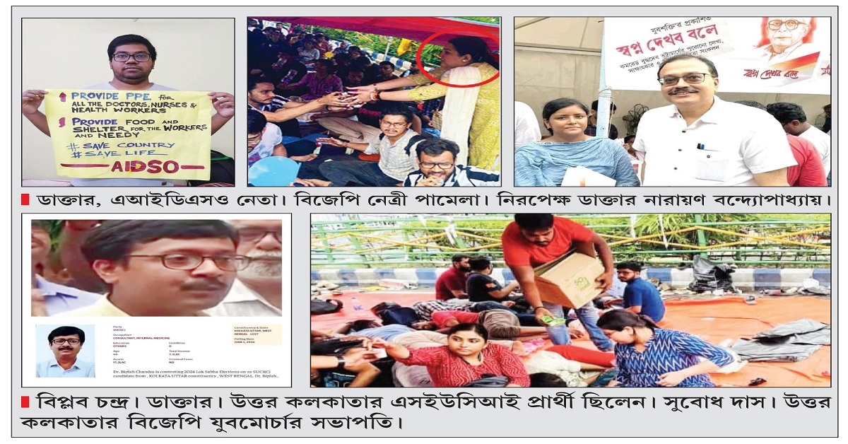 বাংলার মুখ্যমন্ত্রী মমতা বন্দ্যোপাধ্যায় আন্দোলনরত চিকিৎসকদের সঙ্গে আলোচনা করে জট কাটানোর অপেক্ষায় রয়েছেন। অথচ বৃহস্পতিবার নবান্নের দোরগোড়ায় পৌঁছেও আলোচনায় বসলেন না আন্দোলনরত জুনিয়র ডাক্তাররা। প্রশাসনের উপর দায় চাপিয়ে ফের স্বাস্থ্য ভবনের সামনে ধরনা মঞ্চে ফিরে গেলেন। মুখে অরাজনৈতিক আন্দোলনের বুলি আওড়ালেও প্রতিবাদ-ধরনায় যে বাম-বিজেপি নেতৃত্ব মদত দিচ্ছেন এবং শামিল হচ্ছেন, তা আর বলার অপেক্ষা রাখে না। ছবি তা প্রমাণ করে দিয়েছে। খাবার আসছে যাদবপুরের ক্যান্টিন থেকে। সমাজমাধ্যমে প্রত্যক্ষভাবে উসকানি দেওয়ার কাজ চলছে। দীপ্সিতাই শুধু নন, ডিওয়াইএফআইয়ের রাজ্য সম্পাদিকা মীনাক্ষী মুখোপাধ্যায়ের সঙ্গেও ডাক্তারবাবুর ছবি। আবার মাদক-কাণ্ডে অভিযুক্ত বিজেপি নেত্রী পামেলা গোস্বামী ডাক্তারদের পাশে বসে মমতা বন্দ্যোপাধ্যায়ের বিরুদ্ধে স্লোগান দিচ্ছেন, পদ্ম শিবিরের শর্বরী মুখোপাধ্যায় হাতপাখা নিয়ে চিকিৎসকদের বিক্ষোভে শামিল। তাহলে এই আন্দোলনকে কি আর অরাজনৈতিক বলা যায়? ছবি পোস্ট করে ঠিক এই প্রশ্নই তুলেছেন তৃণমূল নেতা সায়নদেব চট্টোপাধ্যায়। রাজ্যসভার প্রাক্তন তৃণমূল সংসদ কুণাল ঘোষও একই প্রশ্ন তুলেছেন। সমাজমাধ্যমে উঠে আসা জুনিয়র ডাক্তারদের আন্দোলনে রাম-বামের যোগসূত্রের ছবি প্রমাণ করে অসহযোগিতা কেন আর আসল উদ্দেশ্যই বা কী! সাধারণ মানুষের মনেও এবার আন্দোলনের আসল উদ্দেশ্য নিয়ে প্রশ্ন উঠতে শুরু করেছে।
