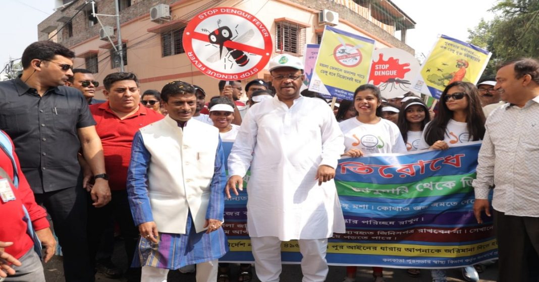 প্রতিবেদন : একদিকে উচ্চপদাধিকারীদের সঙ্গে জরুরি বৈঠক, অন্যদিকে পথে নেমে সাধারণ মানুষকে সচেতন করা— ডেঙ্গুর বিরুদ্ধে এভাবেই এখন দ্বিমুখী লড়াই চালাচ্ছেন কলকাতার মেয়র ফিরহাদ হাকিম। বৃহস্পতিবার সাতসকালেই তিনি বেরিয়ে পড়লেন পাটুলির ১০১ নম্বর ওয়ার্ডের রাস্তায়। এটি মডেল ওয়ার্ড। এলাকার মানুষকে সঙ্গে নিয়ে রীতিমতো মিছিল করে ডেঙ্গুবিরোধী অভিযান চালালেন।