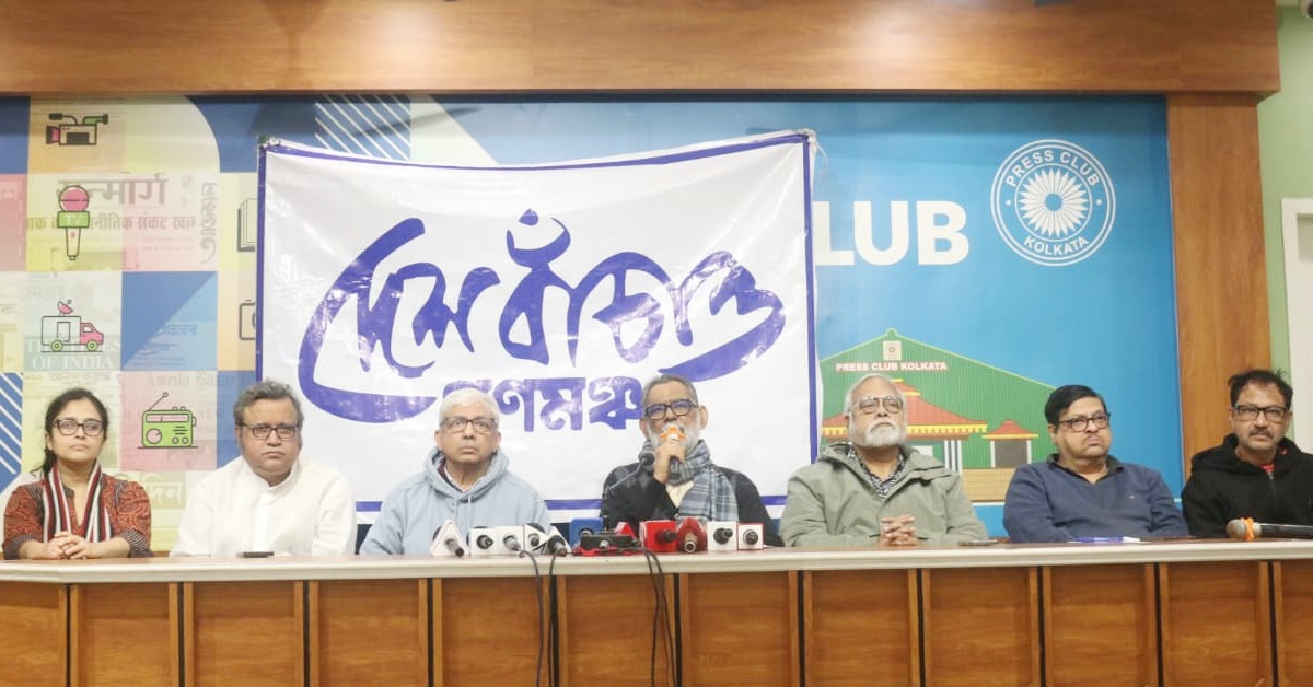 শুক্রবার কলকাতা প্রেস ক্লাবে সাংবাদিক বৈঠকে গণমঞ্চের তরফে রাজ্যের প্রাক্তন সাংসদ পূর্ণেন্দু বসুর নেতৃত্বে উপস্থিত ছিলেন সাংবাদিক-লেখক রন্তিদেব সেনগুপ্ত, সাংবাদিক-রাজনৈতিক বিশ্লেষক সুমন ভট্টাচার্য, পার্থ বন্দ্যোপাধ্যায়, নাজমুল হক, বর্ণালী মুখোপাধ্যায়, দেবাশিস বক্সি-সহ অন্যরা। পূর্ণেন্দু বসু বলেন, আমরা সমস্ত ধরনের মৌলবাদ ও সাম্প্রদায়িকতার বিরুদ্ধে। সেই কারণে এই ধরনের হামলার বিরুদ্ধে আমরা রুখে দাঁড়াতে চাই। সমমনস্ক মানুষের প্রতি তাঁর আহ্বান, যাঁরা প্রকৃত ধর্মনিরপেক্ষ, যাঁরা প্রকৃত গণতন্ত্র চান— তাঁরা এগিয়ে আসুন।