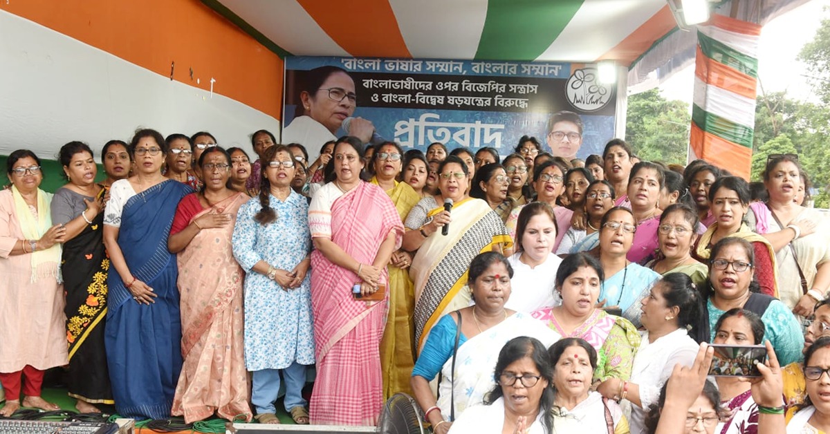 প্রতিবেদন : মায়ের ভাষা। বাংলাভাষা (Bengali Language)। মাতৃভাষা। আর সেই ভাষার উপরেই দেশ জুড়ে ঘৃণা-বিদ্বেষের বিষ ছড়াচ্ছে বিজেপি। ভিনরাজ্যে কাজ করতে গিয়ে ক্রমাগত আক্রান্ত বাংলাভাষী শ্রমিকরা। রাজ্যের মুখ্যমন্ত্রী মমতা বন্দ্যোপাধ্যায়ের নেতৃত্বে সেই অত্যাচারের প্রতিবাদে গর্জে উঠেছে সারা বাংলা। ধর্মতলায় ডোরিনা ক্রসিংয়ে লাগাতার চলছে প্রতিবাদ-বিক্ষোভ।