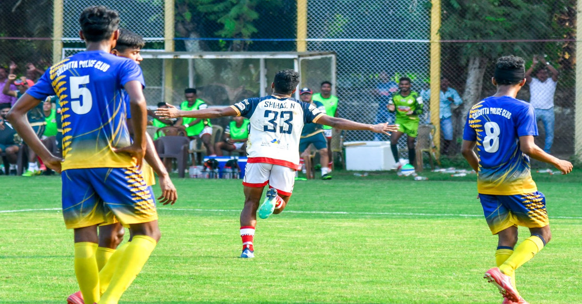 বৃহস্পতিবার বিধাননগর পুরসভার স্পোর্টস কমপ্লেক্সের মাঠে দুই (DHFC vs Calcutta Police Club) দল মুখোমুখি হয়েছিল। গ্রুপ পর্বে শেষ ম্যাচ খেলার প্রায় একমাস পর ম্যাচ খেলল ডায়মন্ড হারবার। তবু সলমান, তুহিন, সুকুরাম সর্দারদের খেলায় তার প্রভাব পড়েনি। বরং শুরু থেকে ম্যাচের রাশ ছিল কিবুর ছেলেদের হাতে। খেলার শুরুতেই গোলের লকগেট প্রায় খুলে ফেলেছিল ডায়মন্ড হারবার। কিন্তু সুযোগ কাজে লাগাতে পারেননি সফিকরা। তবে প্রথমার্ধের ইনজুরি টাইমে এগিয়ে যায় ডায়মন্ড হারবার। গোল করেন শিহাদ।