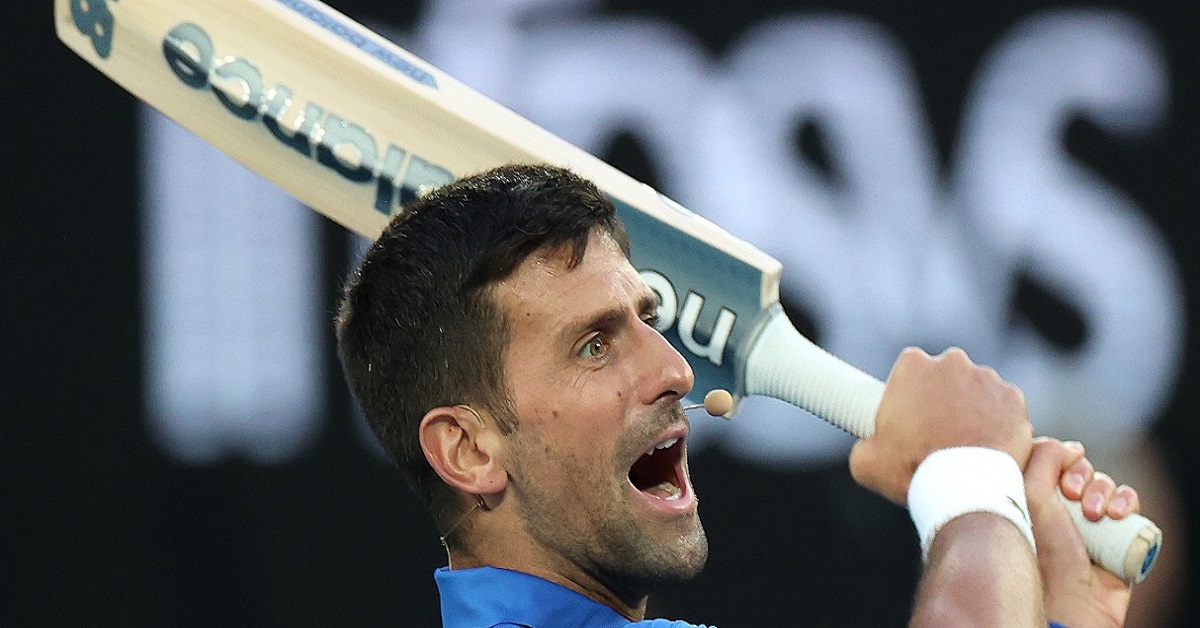 এখানেই শেষ নয়, কোর্টের মধ্যেই নিয়ে আসা হয় স্টাম্প, বল এবং ক্রিকেট ব্যাট। প্রথমে ব্যাটিং করেন জকো। স্মিথের করা প্রথম বল মিস করার পর, দ্বিতীয় বলের সময় ক্রিকেট ব্যাট ফেলে চটজলদি টেনিস র্যাকেট হাতে তুলে নিয়ে সপাটে বল গ্যালারিতে পাঠিয়ে দেন। এরপর স্মিথকে বলও করেন জকোভিচ।