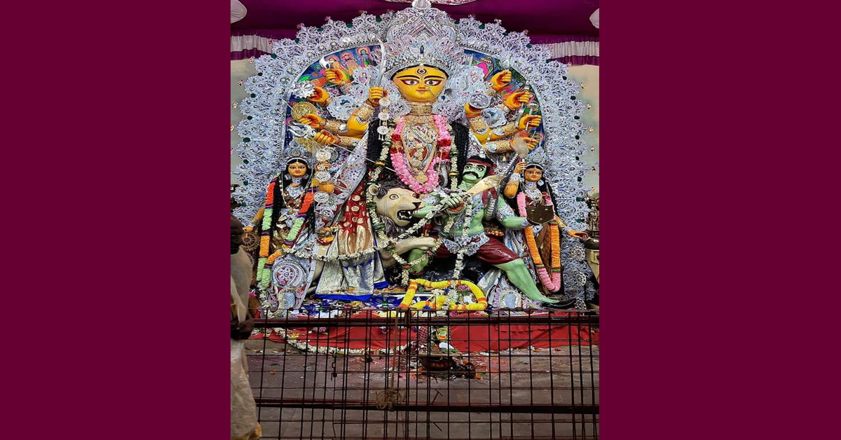 চন্দন মুখোপাধ্যায়, কাটোয়া: আকাশজুড়ে প্রবল ঝড়ের অশনিসংকেত। পুজো (Durga Puja) কীভাবে হবে সেই দুশ্চিন্তায় কপালে গভীর ভাঁজ। সেই আবহেই মেলে দুর্গার স্বপ্নাদেশ। মাকে গাছের সঙ্গে বেঁধে রাখার নিদান। ১৯৪২ সালে দুর্গোৎসবের মুখে রাতের সেই স্বপ্নাদেশ আজও অক্ষরে অক্ষরে মানেন কাটোয়ার ঘোড়ানাশ গ্রামের জমিদার ভবানন্দ রায়ের পরিবারের সদস্যরা। মণ্ডপ লাগোয়া গাছের সঙ্গে মোটা দড়ি বেঁধে চারদিন ধরে পুজো হয় মহামায়ার। বিসর্জনের রাতে খোলা হয় দড়ি। ১৭৫১ সালে নিজের ভিটে লাগোয়া ৫ কাঠা জায়গায় বাঁশের কাঠামোয় তালপাতার ছাউনি দিয়ে পুজোর পত্তন করেন মুর্শিদাবাদের নবাব আলিবর্দির দেওয়ান এলাকার জমিদার ভবানন্দ রায়। দুর্গা এখানে ‘খেপি মা’ হিসেবে খ্যাত। পুজো জাঁকজমকের সঙ্গে সম্পন্ন করার জন্য আর্থিক সাহায্য করেন নবাব আলিবর্দি। এমনকী পুজো দেখতে নিজে হাজিরও হন। শুরুর বছরগুলিতে মেষ, মোষ ও ছাগবলি হত। এখন শুধু ছাগবলি হয়।