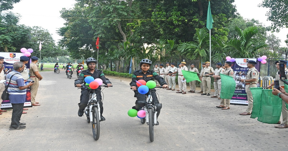 সংবাদদাতা, বর্ধমান : মঙ্গলবার পূর্ব বর্ধমান জেলা পুলিশ নিরাপত্তা এবং অপরাধ দমনে গোটা জেলা জুড়ে প্রথম দফায় জেলার চার মহকুমায় ই-সাইকেল উইনার্স টিম চালু করল। একই সঙ্গে এদিন মোটরবাইক নিয়ে মহিলা উইনার্স টিমের সংখ্যা আরও বাড়ানো হল। বাড়ানো হল পিংক মোবাইল ভ্যানের সংখ্যাও। বর্ধমান পুলিশ লাইনে উদ্বোধন কর্মসূচিতে উপস্থিত ছিলেন আইজি ট্রাফিক সুকেশকুমার জৈন, জেলার পুলিশ সুপার সায়ক দাস-সহ জেলা পুলিশের আধিকারিকরা।
