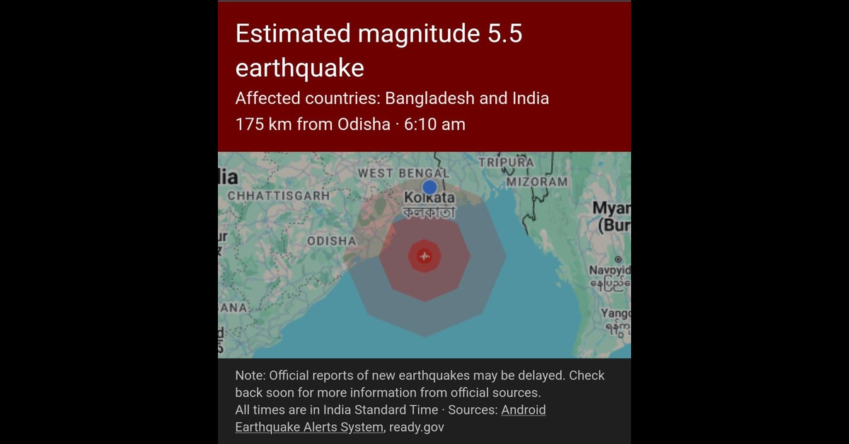 মঙ্গলবার সকালে শুধু কলকাতা (Kolkata) নয়, পশ্চিমবঙ্গের একাধিক জেলায় কম্পন অনুভূত হল। সকাল ৬টা ১০ মিনিট নাগাদ কেঁপে ওঠে একাধিক জেলা। প্রাথমিকভাবে জানা যাচ্ছে বঙ্গোপসাগর এই ভূমিকম্পের উৎসস্থল। তুলনামূলক বেশি প্রভাব পড়েছে উপকূলের জেলাগুলিতে। ওড়িশা থেকে ১৭৫ কিলোমিটার পূর্বে সমুদ্রে ওই কম্পনের উৎসস্থল বলে মনে করা হচ্ছে। কলকাতা থেকে দূরত্ব ৩৩০ কিলোমিটার। রিখটার স্কেলে এই কম্পনের মাত্রা ছিল ৫.১। পশ্চিমবঙ্গ ছাড়া ওড়িশাতেও এই কম্পন অনুভূত হয়েছে। বাংলাদেশেও এর প্রভাব পড়েছে। উৎসস্থলের গভীরতা ছিল ৯১ কিলোমিটার। যদিও এখনও পর্যন্ত ক্ষয়ক্ষতির কোনও খবর পাওয়া যায়নি।