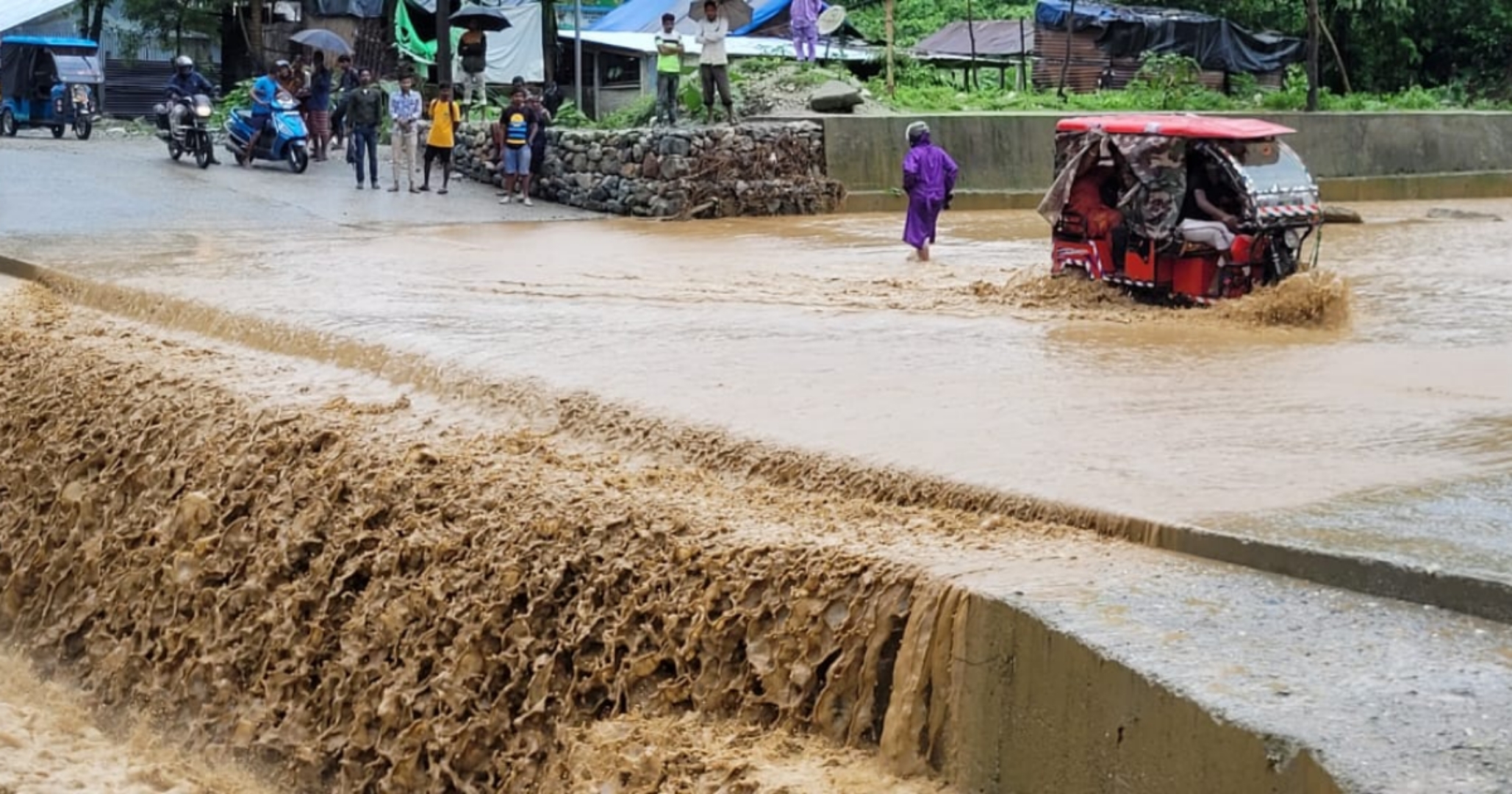 ময়নাগুড়িতে অতিবৃষ্টির ফলে জলবন্দি ৪০টি পরিবার। ময়নাগুড়ি শহরের ৮ নম্বর ওয়ার্ডের ঘটনা। ৮ নং ওয়ার্ডের কাউন্সিলর প্রদ্যোত বিশ্বাস ঘটনাস্থলে এসে জল নিকাশের কাজে পুরকর্মীদের সঙ্গে কাজে হাত লাগান। এদিকে, বাঙড়ি নদীর প্রবল জলোচ্ছসে বিচ্ছিন্ন আলিপুরদুয়ারের টোটো পাড়া। ডুয়ার্স জুড়ে চলছে অবিরাম বৃষ্টিপাত। মাদারিহাট থেকে টোটো পাড়া যাবার রাস্তায় বাঙড়ি নদীতে আচমকা জলস্তর বেড়ে যোগাযোগ বিচ্ছিন্ন হয়ে পড়ে টোটো পাড়া। প্রায় ঘন্টা দুয়েক পর পরিস্থিতি স্বাভাবিক হয়।