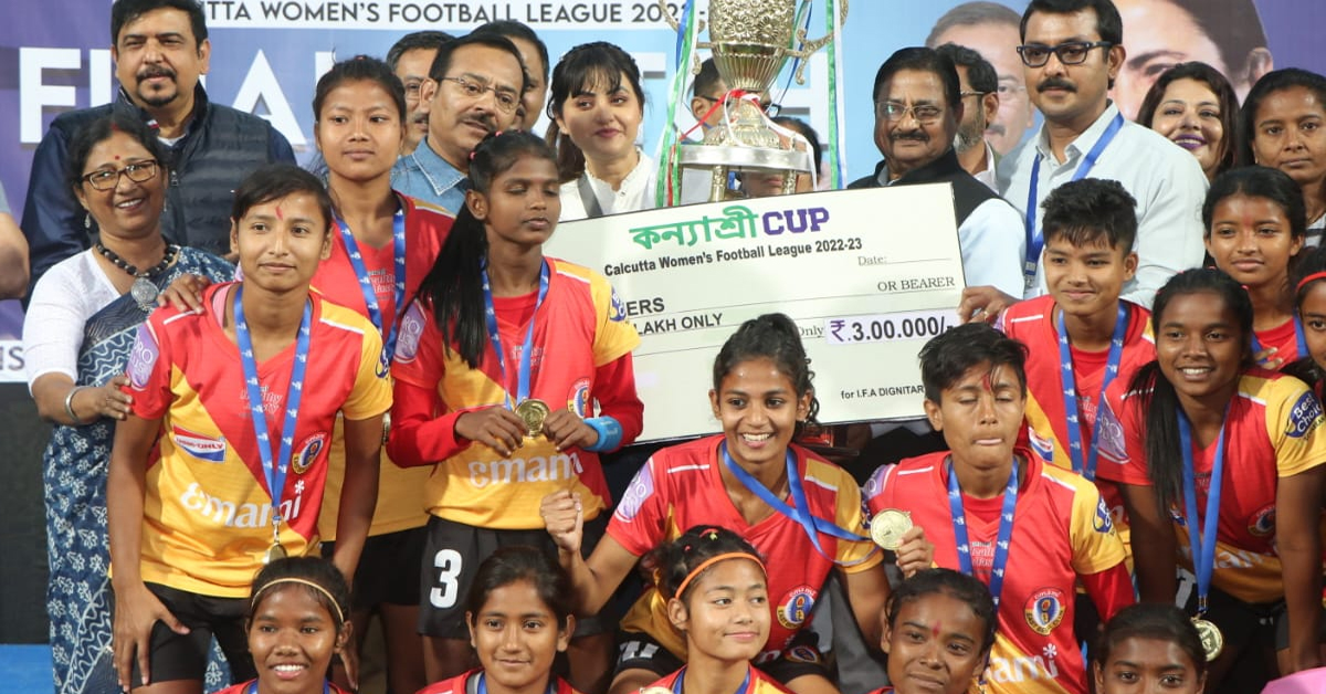 প্রতিবেদন : কলকাতা মহিলা ফুটবল লিগ কন্যাশ্রী কাপে চ্যাম্পিয়ন ইস্টবেঙ্গল (Kanyashree Cup- East Bengal)। শনিবার কিশোরভারতী ক্রীড়াঙ্গনে হাড্ডাহাড্ডি লড়াইয়ে শ্রীভূমি এফসি-কে ১-০ গোলে হারাল লাল-হলুদের মেয়েরা। কলকাতা মহিলা ফুটবল লিগ এই নিয়ে দ্বিতীয়বার চ্যাম্পিয়ন হল ইস্টবেঙ্গল। তবে লিগের নাম কন্যাশ্রী কাপ হওয়ার পর প্রথমবার ট্রফি জিতল তারা। খেলার ৮৮ মিনিটে ইস্টবেঙ্গলের হয়ে জয়সূচক গোলটি করেন সুলঞ্জনা রাউল। ফাইনালের সেরা ফুটবলার হওয়া ছাড়াও কন্যাশ্রী কাপের (Kanyashree Cup- East Bengal) সেরা প্রতিশ্রুতিমান ফুটবলারের সম্মান পান সুলঞ্জনা।