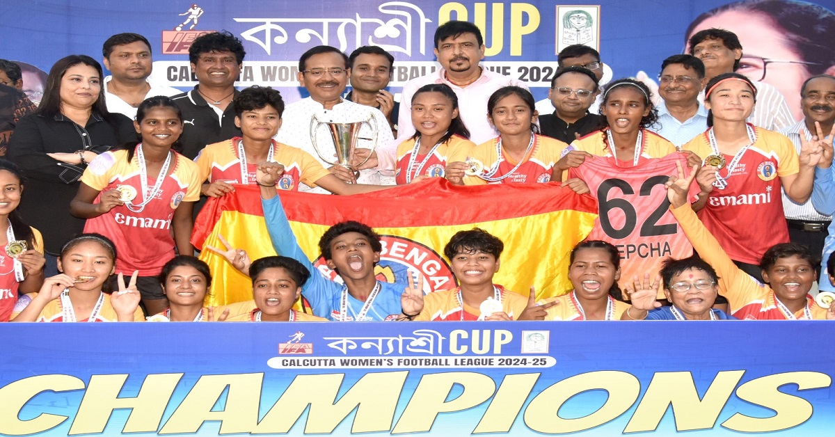 প্রতিবেদন : ক্লাবের সিনিয়র ফুটবল দলের মরশুম জুড়ে ধারাবাহিক ব্যর্থতার মধ্যেই ইস্টবেঙ্গলে মশাল জ্বালিয়ে রেখেছেন মেয়েরা। ইন্ডিয়ান উইমেন্স লিগে (আইডব্লুএল) ভারতসেরা হওয়ার পর কলকাতা প্রিমিয়ার লিগেও (কন্যাশ্রী কাপ) চ্যাম্পিয়ন হয়ে দ্বিমুকুট জিতল ইস্টবেঙ্গল। মঙ্গলবার কিশোরভারতী ক্রীড়াঙ্গনে ফাইনালে গতবারের চ্যাম্পিয়ন শ্রীভূমিকে টাইব্রেকারে হারিয়ে খেতাব জিতল লাল-হলুদের প্রমিলাবাহিনী। তিন বছরের লিগে এই দুই দলই দাপট দেখিয়েছে। প্রথম বছর চ্যাম্পিয়ন হয় ইস্টবেঙ্গল। গতবার রানার্স হওয়ার পর ফের এবার সেরা লাল-হলুদের মেয়েরা। সঙ্গে গতবারের ফাইনাল হারের বদলাও। চ্যাম্পিয়ন ইস্টবেঙ্গলকে ট্রফি তুলে দেন ক্রীড়ামন্ত্রী অরূপ বিশ্বাস। অভিনন্দন জানান কোচ, ফুটবলারদের। ছিলেন মন্ত্রী সুজিত বসুও।