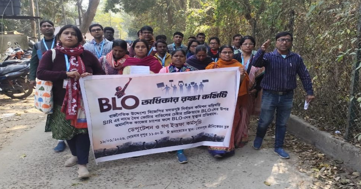 সংবাদদাতা, বীরভূম : নির্বাচন কমিশনের খামখেয়ালিপনার জেরে বিপদে পড়ছেন বিএলওরা। এই অভিযোগে প্রায় ৮০ জন বিএলও (Bolpur_BLO) গণইস্তফা দিলেন বোলপুর শ্রীনিকেতন ব্লকের বিডিওকে। বিএলও অধিকার রক্ষা কমিটির সদস্য বিপ্লব বন্দ্যোপাধ্যায় বলেছেন, যে মানসিক যন্ত্রণার মধ্যে দিয়ে আমরা যাচ্ছি, তাতে এইভাবে এসআইআর-এর কাজ করা অসম্ভব। প্রত্যেকদিন নতুন নতুন নিয়ম তৈরি করে চাপিয়ে দেওয়া হচ্ছে। একটা কাজ শেষ না হতে আরেকটা নিয়ম ঘাড়ে চাপিয়ে দিচ্ছে। আমরা সিদ্ধান্ত নিয়েছি, সুষ্ঠুভাবে এসআইআর-এর কাজ সম্পন্ন যদি না করতে পারি, আগামী দিনে কাজ বন্ধ করে দেব। এ বিষয়ে বিডিও অর্পিতা চৌধুরি জানিয়েছেন, বিএলওদের তরফ থেকে একাধিক দাবি নিয়ে ডেপুটেশন দেওয়া হয়েছে। আমরা ওঁদের দাবি জেলাশাসকের কাছে পাঠিয়ে দেব। প্রশাসনিক স্তর থেকে সিদ্ধান্ত আসার পরেই বলতে পারা যাবে প্রশাসন কী ভাবছে। বিএলও পম্পাবতী রায় কোনার জানিয়েছেন, সাধারণ মানুষ ভাবছে আমরা তাঁদের নাম কেটে দিচ্ছি। আবার নির্বাচন কমিশনের দেওয়া নতুন নতুন আইন মানতে না পারলে চাকরি খেয়ে নেওয়ার হুমকি দেওয়া হচ্ছে। ইতিমধ্যে বেশ কয়েকজন চাপ সহ্য করতে না পেরে আত্মহত্যা করেছেন। এই মানসিক যন্ত্রণা আমাদের পক্ষে বহন করা সম্ভব হচ্ছে না। বিধায়ক বিকাশ রায়চৌধুরি জানিয়েছেন, মুখ্যমন্ত্রী প্রথম দিন থেকেই বলে এসেছেন, এসআইআর হল বিজেপি এবং নির্বাচন কমিশনের যৌথ আক্রমণে সাধারণ মানুষের জীবন নিয়ে ছিনিমিনি খেলবে। যে বিএলওরা (Bolpur_BLO) নিরন্তর পরিশ্রম করছেন তাঁদের কমিশন ভয় দেখাচ্ছে, চাপ দিচ্ছে জোর করে নাম বাদ দেওয়ার। প্রত্যেকদিন নতুন নতুন আইন তৈরি করে সাধারণ মানুষকে বিপদে ফেলার জন্য বিএলওদের ব্যবহার করছে। তাতেই চারিদিকে বিএলওরা গণইস্তফা দিচ্ছেন।