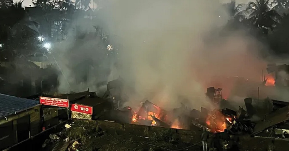 স্থানীয় সূত্রে জানা গেছে মধ্যরাতে আচমকা একটি কাপড়ের দোকানে আগুন লাগে। কিন্তু বাজারে দোকানগুলি এতটাই গায়ে গায়ে যে একটার থেকে আরেকটায় ছড়িয়ে পড়তে বেশি সময় নেয়নি।দমকল ঘটনাস্থলে পৌঁছলেও রাস্তা সরু হওয়ার কারণে বাজারের ভিতরে যেতে পারেনি। তাই পাশের উড়ালপুলে দমকলের গাড়িগুলি দাঁড় করিয়ে আগুন নেভানোর কাজ হচ্ছিল। পরিস্থিতি সম্পূর্ণ নিয়ন্ত্রণে আনতে মঙ্গলবার সকাল হয়ে যায়। তাও বেশ কিছু পকেট ফায়ার রয়েছে বলে মনে করা হচ্ছে। কীভাবে আগুন লাগল তা স্পষ্ট নয়। অন্যদিকে বাগুইআটির একটি আবাসনেও সোমবার রাতে অগ্নিকাণ্ডের ঘটনা ঘটেছে। হিটার থেকে দুর্ঘটনা বলে প্রাথমিক অনুমান। হতাহতের খবর মেলেনি।