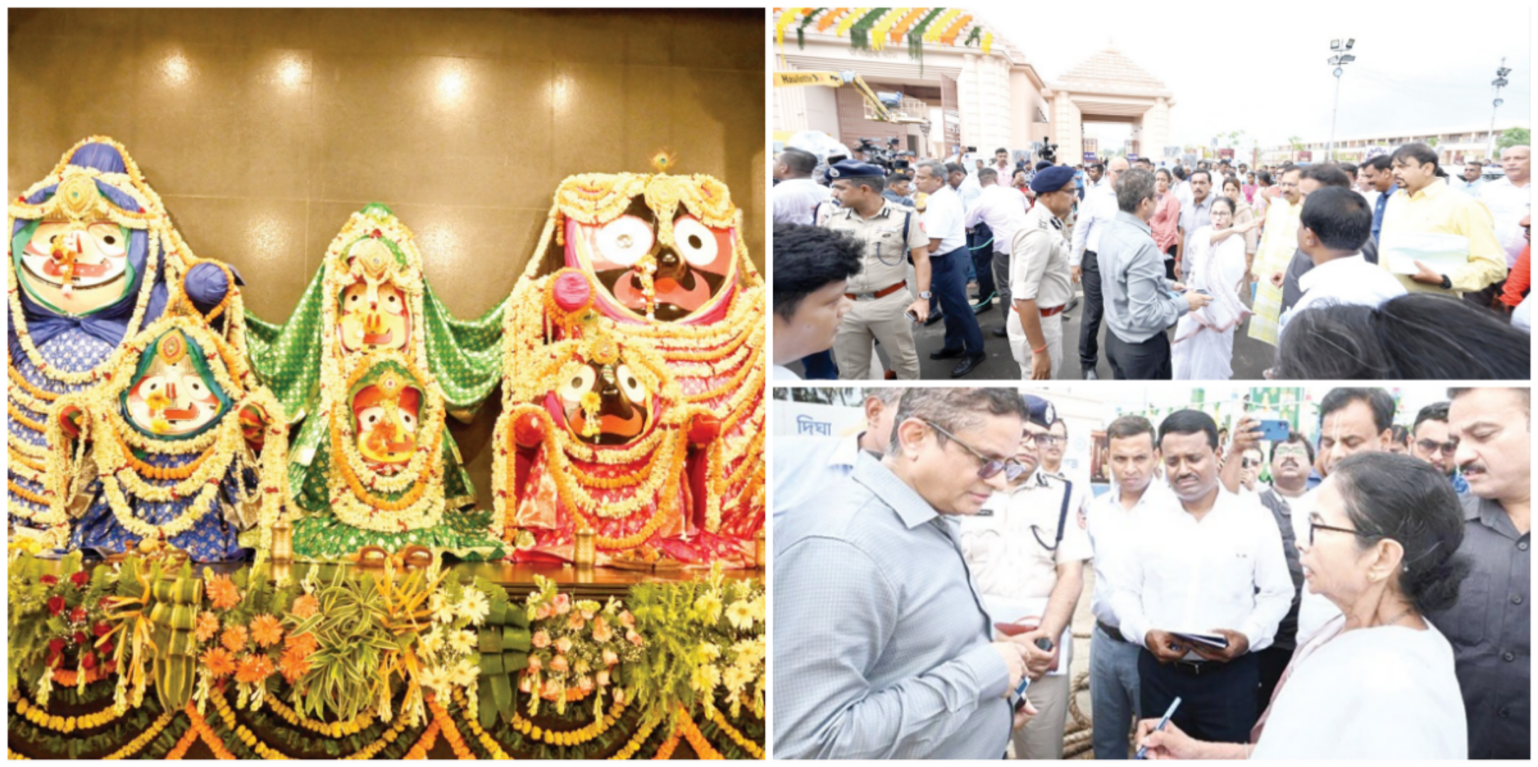 মুখ্যমন্ত্রী জগন্নাথ মন্দির থেকে সরাসরি পৌঁছে যান নবনির্মিত মাসির বাড়িতে। সেখানে নতুন মাসির বাড়ি-সহ পুরনো জগন্নাথ মন্দিরের প্রস্তুতি ঘুরে দেখেন। কয়েক মিনিটের জন্য যান সমুদ্রের পাড়েও। এরপর কোথায় রথ থাকবে এবং আচারবিধি নিয়ে আধিকারিকদের সাথে কথা বলেন মুখ্যমন্ত্রী। মুখ্যমন্ত্রী আরও জানান, নিমকাঠের মূর্তি রথে আসবে। কিন্তু পাথরের মূর্তি জগন্নাথধামে থাকবে। মানুষ আসুক এবং দর্শন করুক। আগামী কাল ন’টার পর থেকে মানুষ রথদর্শন করতে পারবেন। তখন থেকেই চলবে পুজোপাঠ। পদপিষ্ট এড়াতে রাস্তার দুধারে বাঁশের ব্যারিকেড করা হয়েছে। রয়েছে ড্রপিং পয়েন্ট। ব্যারিকেডের ধারে থাকবে রথের রশি। সেখান থেকে রথ টানবেন দর্শনার্থীরা।