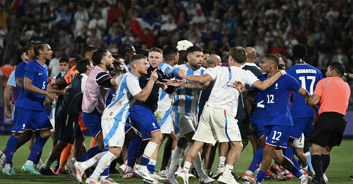 বোর্দো, ৩ অগাস্ট : বিশ্বকাপ ফাইনালে হারের মধুর প্রতিশোধ। অলিম্পিক ফুটবলের কোয়ার্টার ফাইনালে আর্জেন্টিনাকে ১-০ গোলে হারিয়ে সেমিফাইনালে উঠল আয়োজক ফ্রান্স। তুমুল উত্তেজনাপূর্ণ ম্যাচ শেষ হওয়ার পর, দু’দলের ফুটবলাররা নিজেদের মধ্যে হাতাহাতিতে জড়িয়ে পড়েন! সংর্ঘষের উত্তাপ ছড়িয়ে পড়েছিল গ্যালারিতেও। যদিও পুলিশ ও নিরাপত্তারক্ষীদের হস্তক্ষেপে পরিস্থিতি মাত্রা ছাড়াতে পারেনি।