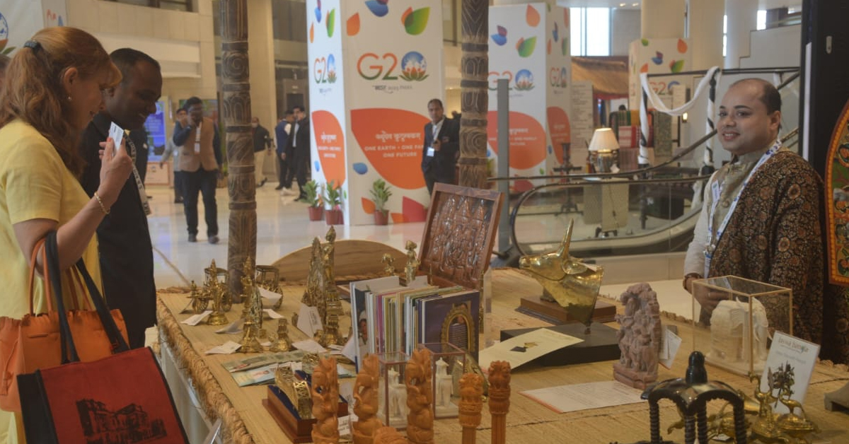 প্রতিবেদন : বিশ্বের অন্যতম শক্তিশালী অর্থনীতিগুলির যৌথ মঞ্চ জি-২০। কলকাতায় (G-20 Summit in Kolkata) বসেছে তার আর্থিক বিষয়ক গুরুত্বপূর্ণ ওয়ার্কিং গ্রুপের তিনদিনের বৈঠক। সোমবার মুখ্যমন্ত্রী মমতা বন্দ্যোপাধ্যায়ের উপস্থিতিতে যার সূচনা হল। শুরু থেকেই ব্যাঙ্কিং পরিষেবা উন্নীতকরণ ও সাধারণ মানুষের কাছে পৌঁছে দেওয়ার জন্য ভারী ভারী অর্থনৈতিক তত্ত্ব নিয়ে একের পর এক বৈঠক চলেছে দেশ-বিদেশের নামীদামি অর্থনীতিবিদদের উপস্থিতিতে। তবে শুধু নিরস অর্থনীতির আলোচনা নয়, নিউটাউনের বিশ্ববাংলা অডিটোরিয়ামে জি-২০র প্রথম দিনের বৈঠকে আক্ষরিক অর্থে রস সঞ্চার করেছে বাংলার নলেন গুড় থেকে শুরু করে জয়নগরের মোয়া, সুন্দরবনের চাক ভাঙা মধু। শুধু খাবারেই সীমাবদ্ধ নয়, কনভেনশন সেন্টারের প্রতিটি তলায় রকমারি পণ্যের পসরা সাজিয়ে তৈরি করা হয়েছে, দারুণ এক প্রদর্শনী। যার মধ্যে ডোকরা থেকে কাঁথা স্টিচ, ছৌনাচের মুখোশ, বাঁকুড়ার ঘোড়া সব কিছুরই দেখা মিলছে।