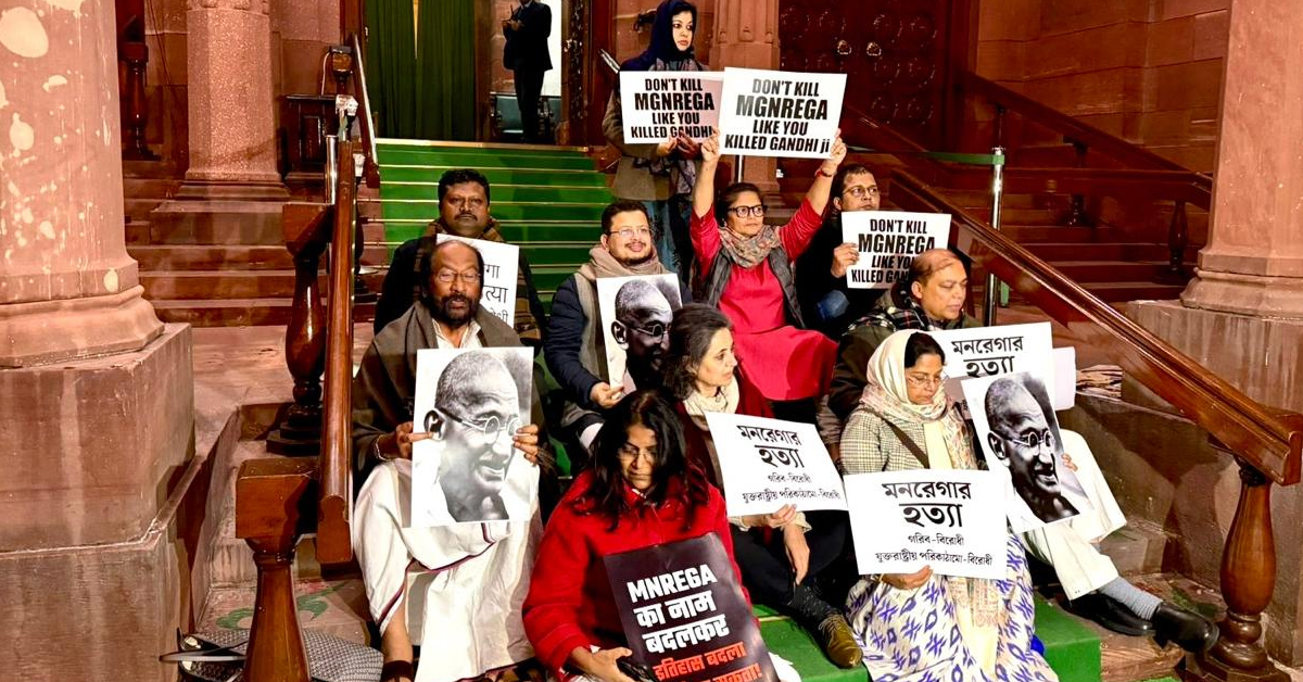 ভোর পাঁচটা নাগাদ ধর্নাস্থল থেকে একটি ভিডিয়ো পোস্ট করেন রাজ্যসভার সাংসদ সাগরিকা ঘোষ। বলেন, ‘সংসদের সিঁড়িতে আমাদের ধর্না কর্মসূচি চলছে। মহাত্মা গান্ধী এবং রবীন্দ্রনাথ ঠাকুরের অপমান আমরা মেনে নেব না।’ ভিডিয়োর শেষে জোর দিয়ে সাগরিকা বলেন, ‘মহাত্মা গান্ধী অমর রহে।’ মোদি সরকার আইন পাস করাতে বুলডোজার কৌশল ব্যাবহার করছে বলেও অভিযোগ করেন সাগরিকা। তাঁর কথায়, ‘বিরোধীদের সঙ্গে কোনও পরামর্শ করা হচ্ছে না। বৈঠকে ডাকা হচ্ছে না। একের পর এক বিল বুলডোজার কায়দার ঠেলে পাস করিয়ে দেওয়া হচ্ছে।’ তাঁর সাফ কথা, ‘মোদি সরকার দ্বিতীয়বার মহাত্মা গান্ধীকে হত্যা করল।’ বিরোধীদের ব্যাপক হট্টগোলের মধ্যেই বৃহস্পতিবার দুপুরে লোকসভায় পাশ হয় ‘বিকশিত ভারত গ্যারান্টি ফর রোজগার অ্যান্ড আজীবিকা মিশন (গ্রামীণ)’ অর্থাৎ ‘জি রাম জি’ বিল (g ram g bill)।