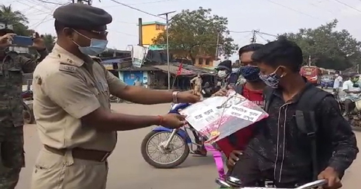 মিতা নন্দী, ঝাড়গ্রাম : করোনা নিয়ে অভিনব প্রচার! ঘুড়ি বিতরণ করে করোনা নিয়ে সচেতনতার প্রচার শুরু করল গোপীবল্লভপুর থানার পুলিশ। গোপীবল্লভপুর বাজারে স্কুলপড়ুয়াদের হাতে ঘুড়ি দেওয়া হল। ঘুড়িতে লেখা আছে, মাস্ক পরুন ও সামাজিক দূরত্ব বজায় রাখুন।