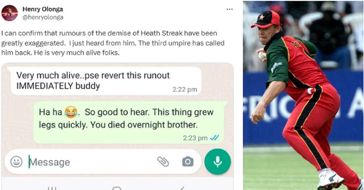 হিথ স্ট্রিকের (Heath Streak) মৃত্যুর খবর হেনরি ওলঙ্গার টুইটে প্রথম প্রকাশ্যে আসে। তাঁর টুইট দেখে সংবাদমাধ্যমগুলি হিথের প্রয়াণের খবর করে। এই ঘটনার চার ঘণ্টার মধ্যে সুর বদলালেন হেনরি। ১০টা ৫৬ মিনিটে তাঁর শেষ টুইট অনুযায়ী, ‘বেঁচে আছেন হিথ’। সেখানে তিনি লেখেন, ‘আমি নিশ্চিত করে বলছি যে স্ট্রিকের মৃত্যুর খবর অতিরঞ্জিত। এইমাত্র তাঁর কাছ থেকে নিশ্চিত হলাম। তৃতীয় আম্পায়ার তাঁকে ফেরত পাঠিয়েছেন। তিনি এখনও বেঁচে রয়েছেন।’ এমন একজন খেলোয়াড়ের মৃত্যু নিয়ে গুজব ছড়ানোয় জিম্বাবোয়ের প্রাক্তন ক্রিকেটারকে ছাড়েন নি নেটিজেনরা। ওলঙ্গা যে পোস্ট করেন সেটি মোট সাতবার এডিট করা হয়।