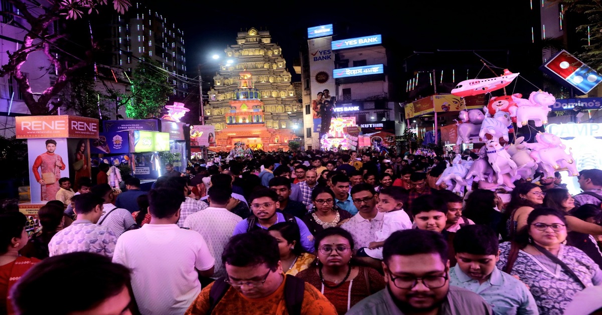 বৃষ্টির ভ্রুকুটি থাকলেও তা এখনও পর্যন্ত বঙ্গবাসীকে দমাতে পারেনি। অষ্টমীতে নাকি ঘূর্ণাবর্ত তৈরি হচ্ছে বঙ্গোপসাগরে। নবমী, দশমীতে মাঝারি থেকে ভারী বৃষ্টিপাতের পূর্বাভাস রয়েছে। তাতে কী! থিমের পুজো থেকে সাবেকি প্রতিমা—প্রতিটি মণ্ডপে দর্শনার্থীদের উপচে পড়া ভিড়। সঙ্গে কোথাও মেলা বসেছে, কোথাও আবার দেদার খানাপিনার আয়োজন। এই সময়টায় নামীদামি রেস্টুরেন্ট থেকে শুরু করে কলকাতা স্ট্রিট ফুড, ফাঁকা নেই কোথাও। ঘামতে ঘামতে বন্ধুবান্ধব, পরিজনদের নিয়ে ঠাকুর দেখার পর পেটপুজো না হলে চলে! অতএব বাঙালি এখন রাতের দিকে, কখনও বা দুপুরে লাইন দিচ্ছে রেস্টুরেন্টের দরজায়। আজ মহাষ্টমী। সকাল থেকে শুরু হয়ে যাবে মণ্ডপে মণ্ডপে অঞ্জলির পালা। সেসব সেরে ফের বাঙালি রাস্তায় নেমে পড়বে দুর্গা দর্শনে। এইতো মাত্র ক’টা দিন। সবটুকু আনন্দ চেটেপুটে না নিলে কি আর হয়!