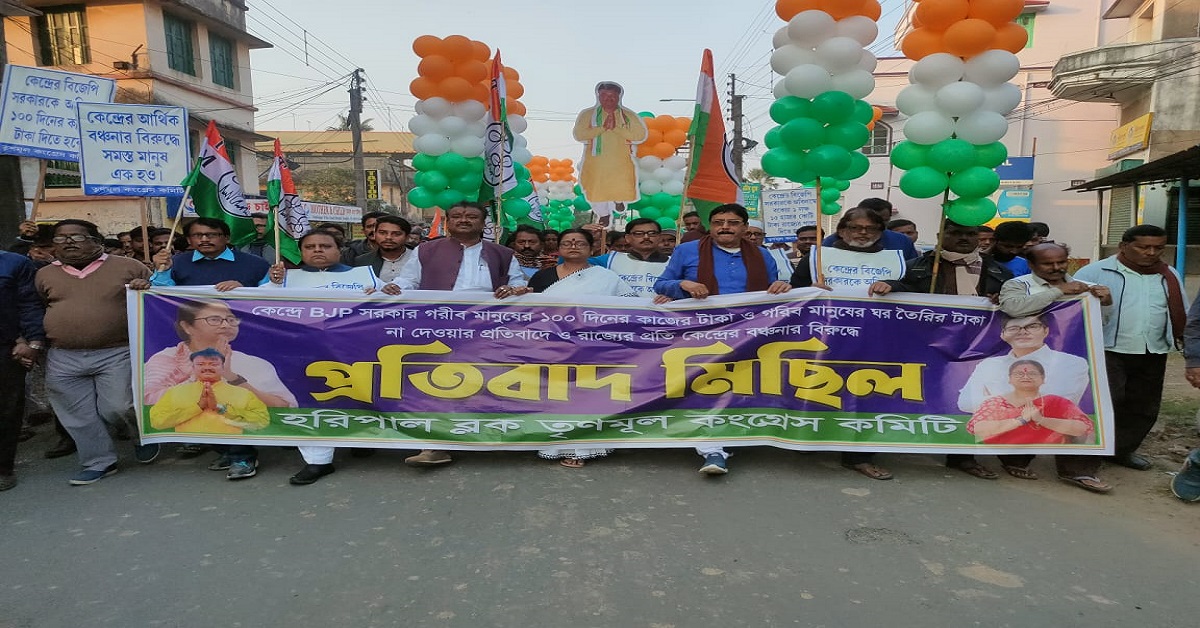 সংবাদদাতা, হুগলি : একশো দিনের কাজের টাকা, আবাস যোজনার বকেয়া টাকা আটকে রেখেছে কেন্দ্র। একই সঙ্গে রাজ্যের প্রতি কেন্দ্রের বঞ্চনার প্রতিবাদ বেড়ে চলেছে দিনকে দিন। এবার এই বঞ্চনার প্রতিবাদে প্রতিবাদ মিছিলের ডাক দিয়েছিল হরিপাল ব্লক তৃণমূল কংগ্রেস। রবিবার এই মহামিছিলের নেতৃত্ব দেন রাজ্যের মন্ত্রী বেচারাম মান্না।