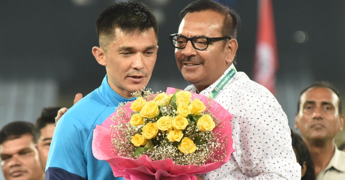 যুবভারতীতে ম্যাচ শেষে মুখ্যমন্ত্রীর হয়ে সুনীলকে (Sunil Chhetri) বিদায়ী সংবর্ধনা জানান ক্রীড়ামন্ত্রী অরূপ বিশ্বাস। মুখ্যমন্ত্রীর ডিজাইন করা পিসি চন্দ্র জুয়েলার্স থেকে বানানো ১৯টি সোনার কয়েন দিয়ে তৈরি সোনার হার, স্যুট, শাড়ি ও ১৯টি গোলাপ তুলে দেওয়া হয় সুনীলের হাতে। ক্রীড়ামন্ত্রী বলেন, “আন্তর্জাতিক ফুটবলকে বিদায় জানালেন কিংবদন্তি সুনীল ছেত্রী। আন্তর্জাতিক ফুটবলে রোনাল্ডো,মেসির পরে তৃতীয় সর্বোচ্চ গোলদাতা তিনি। দীর্ঘ ১৯ বছরের আন্তর্জাতিক কেরিয়ারে ভারতকে উপহার দিয়েছেন বহু স্মরণীয় জয়। সুনীল ছেত্রীর ফুটবলের প্রতি ভালবাসা, শৃঙ্খলা, দায়বদ্ধতা আগামী প্রজন্মের কাছে দৃষ্টান্ত হয়ে থাকবে। বাংলা তথা সারা ভারত সুনীল ছেত্রীকে নিয়ে গর্বিত। বাংলার বুক থেকেই আন্তর্জাতিক ফুটবলকে বিদায় জানালেন তিনি। তাঁর আগামী জীবনের জন্য রইল শুভেচ্ছা ও অভিনন্দন।” যুবভারতীতে ম্যাচ শেষে ক্রীড়ামন্ত্রী বলেন, “মুখ্যমন্ত্রী মমতা বন্দ্যোপাধ্যায় ফোন করে সুনীলকে বিদায়ী ম্যাচের জন্য শুভেচ্ছা জানিয়ে বলেছেন, আমি তোমাকে প্রথম প্রস্তাব দিলাম বাংলা তথা ভারতীয় ফুটবলকে এগিয়ে নিয়ে যাওয়ার জন্য। সুনীল বাংলার ফুটবলের উন্নতিতে এগিয়ে আসুন, চান মুখ্যমন্ত্রী।” মুখ্যমন্ত্রী তথা রাজ্য সরকারের পাশাপাশি স্মারক, উপহার, উত্তরীয় দিয়ে সংবর্ধনা জানিয়েছে সুনীলের প্রাক্তন দুই ক্লাব মোহনবাগান ও ইস্টবেঙ্গলও। আইএম বিজয়ন, ক্লাইম্যাক্স লরেন্স, মেহতাব হোসেন, আলভিটো ডি’কুনহা-সহ সুনীলের প্রাক্তন সতীর্থরাও তুলে দেন স্মারক। সংবর্ধনা দেয় ফেডারেশন ও আইএফএ-ও। ছিলেন মন্ত্রী ফিরহাদ হাকিম ও সুজিত বসুও।