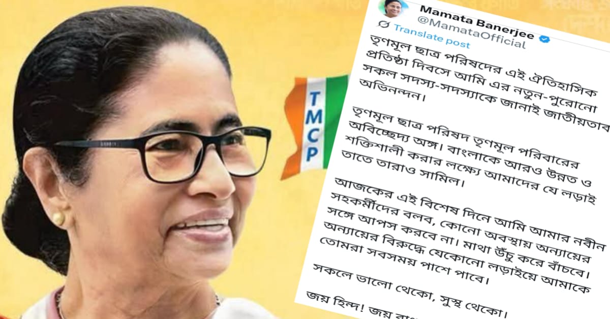 দলের ছাত্র সংগঠনের প্রতিষ্ঠা দিবসে অন্যায়ের সঙ্গে কোনভাবেই আপোস না করার বার্তা দিলেন মুখ্যমন্ত্রী মমতা বন্দ্যোপাধ্যায় (Mamata Banerjee) ৷ বৃহস্পতিবার তৃণমূলের ছাত্র সংগঠনের সদস্যদের উদ্দেশে নিজের এক্স হ্যান্ডেলে পোস্ট করে তিনি স্পষ্ট জানিয়ে দেন কোনও পরিস্থিতিতেই অন্যায়ের সঙ্গে আপস করা যাবে না । ছাব্বিশে বিধানসভা নির্বাচনের আগে এটাই শেষ সমাবেশ ৷