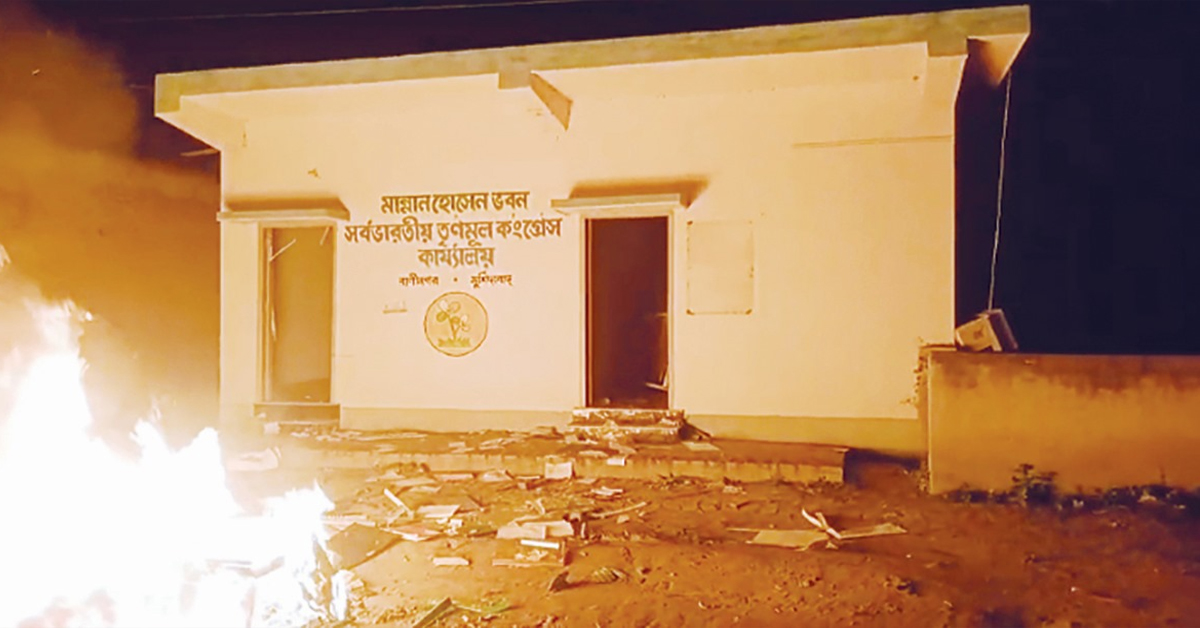 প্রতিবেদন : হিংসাত্মক-পাশবিক আক্রমণ। ধূপগুড়িতে হারের জ্বালা জুড়োতে মুর্শিদাবাদে তৃণমূলের উপর হামলা, ভাঙচুর, আগুন— সবকিছুই ঘটল। নেতৃত্ব দিল বাম-কংগ্রেসের ভোট কাটুয়ারা। রানিনগর-২ ব্লকের কয়েকটি গ্রাম পঞ্চায়েত ও পঞ্চায়েত সমিতি দখল করার পর শুক্রবার কংগ্রেসের ডাকা বিজয় সমাবেশ শেষে রানিনগর থানায় হামলা চালাল বাম ও কংগ্রেস-সমর্থিতরা (congress-cpm)। সভায় অধীর চৌধুরী-সহ একাধিক কং-বাম (congress-cpm) নেতা উসকানিমূলক বক্তব্য রাখেন। নেতারা বক্তব্য শেষ করে চলে যাওয়ার পরই কোনওরকম প্ররোচনা ছাড়াই অস্ত্র নিয়ে হামলা চালায় পুলিশকর্মীদের উপর। থানা লক্ষ্য করে একাধিক সকেট বোমা, ইটপাথর ছোঁড়ে এবং থানার আসবাব, সিসি ক্যামেরাও ভাঙে। দুষ্কৃতীদের এলাকাছাড়া করতে পুলিশকে বেশ কয়েক রাউন্ড কাঁদানে গ্যাস ছুঁড়তে হয়। ভাঙচুর আটকাতে গিয়ে জখম হন এক এএসআই-সহ অন্তত তিন পুলিশকর্মী। আহতদের হাসপাতালে ভর্তি করা হয়। থানায় আক্রমণের পরেই তৃণমূল কার্যালয়েও হামলা চালিয়ে আগুন ধরিয়ে দেয়। তৃণমূল কংগ্রেসের বক্তব্য, বিনা প্ররোচনাতেই হিংসাত্মক এই ঘটনা ঘটিয়েছে বিজেপির দোসর কংগ্রেস ও সিপিএম। আক্রান্ত প্রশাসন। ছারখার পার্টি অফিস। এলাকার মানুষই জবাব দেবেন।
