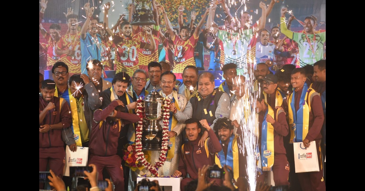 সন্তোষ ট্রফি জেতা দলের চারজন ভবানীপুরের প্লেয়ার। ক্লাব কর্তা সৃঞ্জয় বসুর হিসাবে, গত দু-তিন বছরে এই ক্লাবে খেলা ন’জন ফুটবলার এবারের বাংলা দলে ছিলেন। বুধসন্ধ্যার এই অনুষ্ঠান ছিল আক্ষরিক অর্থেই চাঁদের হাঁট। ছিলেন সুব্রত ভট্টাচার্য, শিশির ঘোষ, কম্পটন দত্ত, অতনু ভট্টাচার্য, দুই ফুটবল কর্তা অনির্বাণ দত্ত ও সুব্রত দত্ত-সহ অনেকেই। শীতের ময়দানে একটু উষ্ণতা ছড়াতে পাওয়া গেল পত্রিকা সম্পাদক, রাজনীতিক তথা মোহনবাগান সহ সভাপতি কুণাল ঘোষ ও প্রতিষ্ঠিত গায়ক অনিন্দ্য চট্টোপাধ্যায়ের মন কেড়ে নেওয়া ডুয়েটও। এরমধ্যে ভবানীপুর কর্তা স্বপন সাধন বসু ঘোষণা করে দিলেন, আমরা জুনিয়র অ্যাকাডেমি গড়ব। বাংলার ফুটবলার গড়ব।